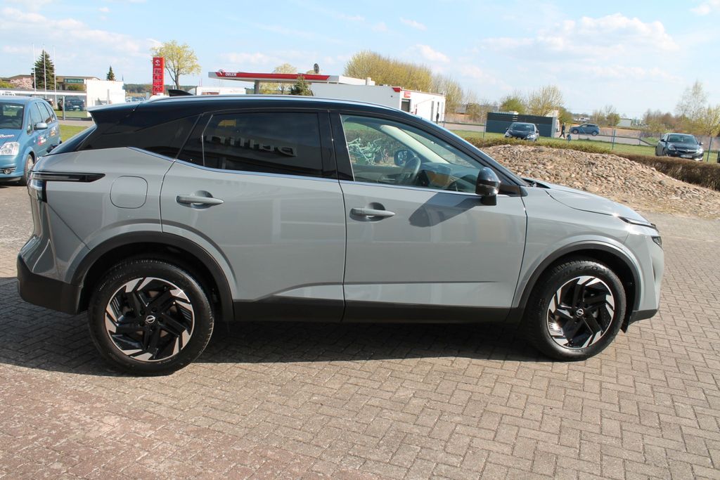 3. Bremsleuchte, Airbag Fahrer-/Beifahrerseite, Ambiente-Beleuchtung, Around View Monitor (360° Umgebungsansicht), Ausstattungs-Paket: Nissan Connect Navigationssystem mit Around View Monitor, Auto-Hold-Funktion, Automatische Fahrlichtschaltung, Außenspiegel elektr. anklappbar, Außenspiegel elektr. verstell- und heizbar, Blinkleuchten LED in Außenspiegel integriert, Dachantenne im Haifischflossen-Design, Dachhimmel hellgrau, Elektr. Bremskraftverteilung (EBD), Fahrassistenz-System: aktiver Spurhalteassistent, mit korrigierendem Bremseingriff, Fahrassistenz-System: Auffahrwarnsystem (Forward Collision Warning, FCW), Fahrassistenz-System: Autonomer Notbrems-Assistent, Fahrassistenz-System: Berganfahr-Assistent, Fahrassistenz-System: Fernlichtassistent, Fahrassistenz-System: Intelligenter Parklenkassistent, Fahrassistenz-System: Moving Object Detection (MOD, Fußgängererkennung und bewegliche Objekterkennung), Fahrassistenz-System: Müdigkeitserkennungs-Sensor, Fahrassistenz-System: Querverkehrs-Assistent Heck (Rear Cross Traffic Alert, RCTA), Fahrassistenz-System: Sicherheitssystem ERA GLONASS mit automatischem Notruf, Fahrassistenz-System: Totwinkel-Assistent, Fahrassistenz-System: Verkehrszeichenerkennung, Fahrmodusschalter, Fensterheber elektrisch vorn + hinten, Gepäck-/Laderaum-Unterteilung (Flexi-Board), Geschwindigkeits-Begrenzeranlage, Geschwindigkeits-Regelanlage (Tempomat) mit Abstandsregelung, Handschuhfach beleuchtet, Heckleuchten LED, Innenraumfilter: Pollenfilter, Innenspiegel mit Abblendautomatik, Instrumentenanzeige TFT-Farbdisplay (12,3 Zoll), Isofix-Aufnahmen für Kindersitz, Karosserie: 5-türig, Klimaautomatik 2-Zonen, Kniepolster Mittelkonsole seitlich, Kofferraumbeleuchtung, Kopf-Airbag-System, Lastenverankerung / Verzurrösen, Lendenwirbelstütze Sitz vorn links, elektr. verstellbar, Lenksäule (Lenkrad) höhen-/längsverstellbar, Leseleuchten vorn und hinten, LM-Felgen, Mild-Hybrid 116 kW (Motor 1,3 Ltr. - 116 kW DIG-T MHEV), Mittelarmlehne hinten mit Getränkehalter, Multimedia-System Nissan Connect, Navigationssystem, Nebelscheinwerfer LED, Nebelschlussleuchte LED, Notbrems-Warnblinkautomatik, Otto-Partikelfilter (OPF), Parkbremse elektrisch, Radstand 2666 mm, Reifendruck-Kontrollsystem, Rückfahrkamera, Rücksitz geteilt/klappbar, Schadstoffarm nach Abgasnorm Euro 6d, Schadstoffarm nach Abgasnorm Euro 6e, Schalt-/Wählhebelgriff Leder, Scheibenwischer mit Intervallschaltung, Seitenairbag, Seitenairbag vorn mitte (Center-Airbag), Service-System: Amazon Alexa, Sitz vorn links höhenverstellbar, Sitz vorn rechts höhenverstellbar, Sitzbezug / Polsterung: Stoff/Kunstleder, Sonnenblenden mit Spiegel (beleuchtet), Start/Stop-Anlage, Steckdose (12V-Anschluß) im Koffer-/Laderaum, Steckdose (12V-Anschluß) in Mittelkonsole, USB-Anschluss im Fond, USB-Schnittstelle, Verglasung hinten abgedunkelt