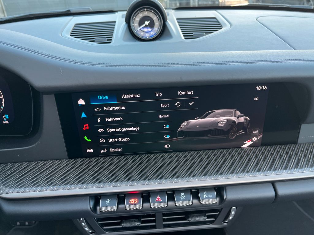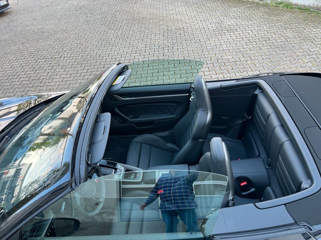 Erleben Sie die Faszination des Porsche 992 Cabrio mit Hybridantrieb. Dieses gepflegte Fahrzeug aus erster Hand beeindruckt mit seiner schwarzen Metallic-Lackierung und dem eleganten schwarzen Lederinterieur. Mit einer beeindruckenden Leistung von 711 PS und Allradantrieb bietet dieser Sportwagen ein außergewöhnliches Fahrerlebnis. Das elektrisch bedienbare Faltverdeck ermöglicht spontanes Open-Air-Vergnügen. Die umfangreiche Ausstattung umfasst ein digitales Cockpit, Navigationssystem, Apple CarPlay und Android Auto. Für höchsten Komfort sorgen die 2-Zonen-Klimaautomatik, elektrisch verstellbare Sitze mit Memory-Funktion und Lendenwirbelstütze. Zahlreiche Assistenzsysteme wie 360°-Kamera, adaptiver Tempomat und Spurhalteassistent erhöhen die Sicherheit. Das Fahrzeug verfügt über ein Scheckheft und erfüllt die Abgasnorm Euro 6e.