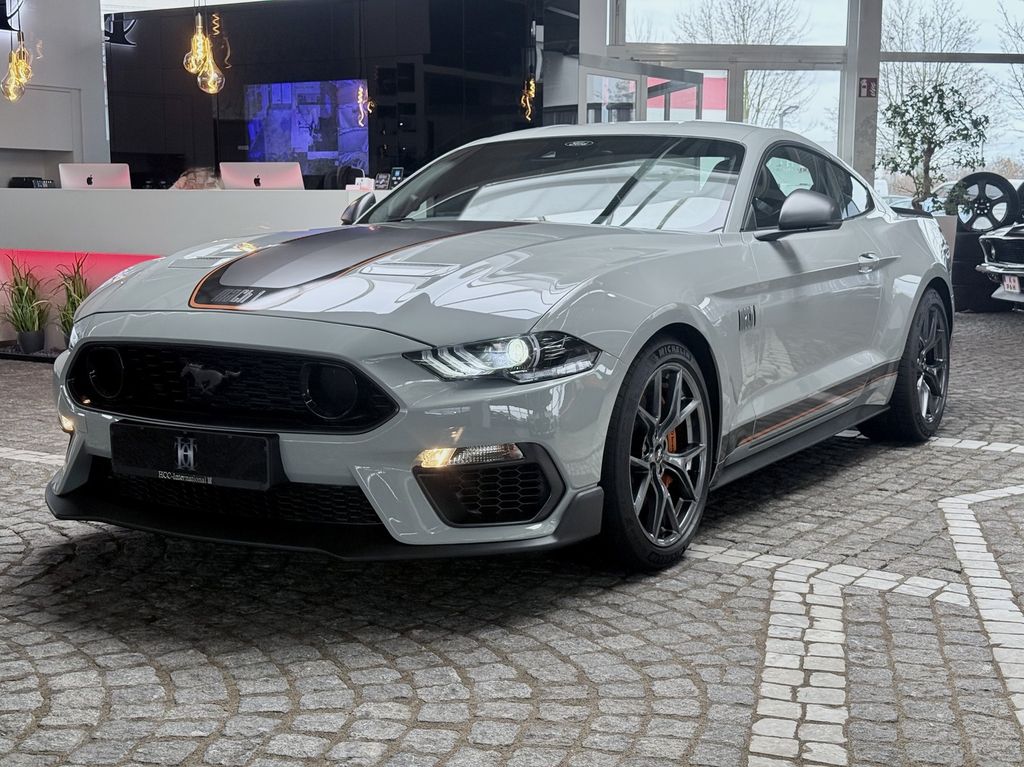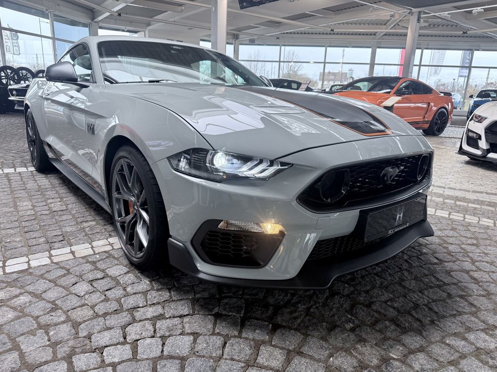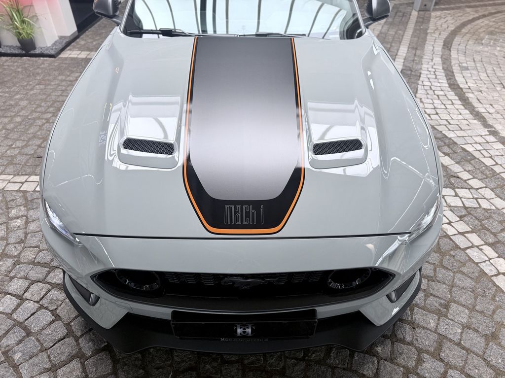 Allgemein- Ford Mustang Mach1 Sonderlackierung Fighter Jet Grey mit Design Streifen in Schwarz/Orange, Magne Ride Fahrwerk, 460PS V8 mit Original Ford Klappenauspuff-Anlage mit weiteren Ausstattungsmerkmalen: