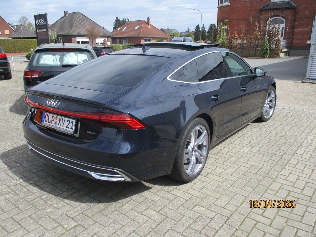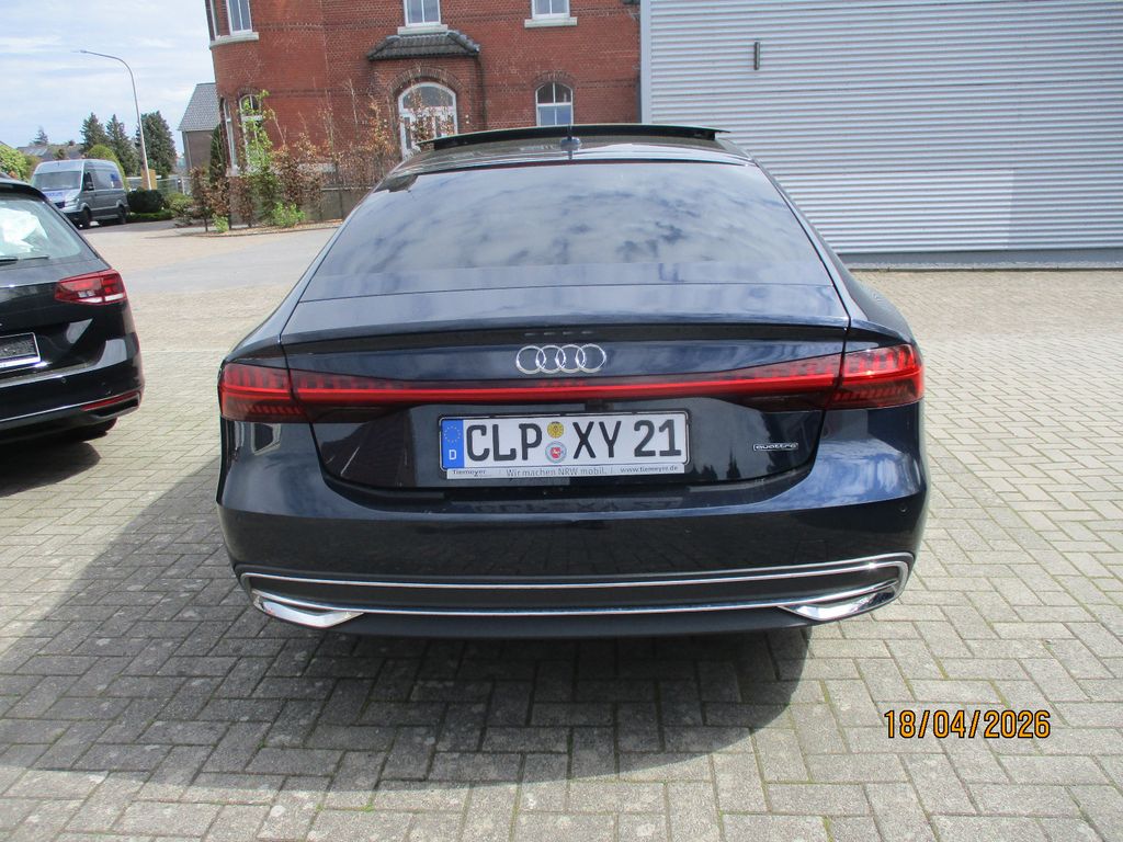 Airbag Beifahrerseite abschaltbar, Airbag Fahrer-/Beifahrerseite, Audi connect (Internetbasierende Dienste), Audi connect (Notruf- und Assistance-System), Audi Drive Select, Audi music interface, Außenspiegel asphärisch, links, Außenspiegel asphärisch, rechts, Außenspiegel Wagenfarbe, Blinkleuchten LED in Außenspiegel integriert, Einparkhilfe vorn und hinten, akustisch und optisch mit selektiver Anzeige (APS Plus), Einstiegsleisten mit Aluminiumeinlage, Fahrassistenz-System: Bremsassistent (Audi pre sense front), Fahrassistenz-System: Insassen-Schutzsystem (Audi pre sense basic), Fahrassistenz-System: Spurverlassenswarnung, Fahrassistenz-System: Verkehrszeichenerkennung, Fensterheber elektrisch hinten, Frontscheibe Wärmeschutzverglasung, Gepäckraumklappe elektr. betätigt (öffnen + schliessen), Glanz-Paket, Innenausstattung: Dekoreinlagen Feinlack, Isofix-Aufnahmen für Kindersitz, Karosserie: 4-türig, Kombiinstrument digital (virtual cockpit plus), Kopf-Airbag-System (Sideguard), Lenksäule (Lenkrad) mech. Höhen-/Längsverstellung, Mild-Hybrid 180 kW (Motor 3,0 Ltr. - 180 kW V6 24V TDI), Mild-Hybrid-Technologie, Modellpflege, Multi-Media-Interface MMI Basic Plus / MMI Radio Plus, Multi-Media-Interface MMI Navigation, Nichtraucher-Paket, Progressivlenkung, Radioempfang digital (DAB), Reifen-Reparaturkit, Reifenkontroll-Anzeige, Schadstoffarm nach Abgasnorm Euro 6e, Scheibenwaschdüsen heizbar, SCR-System (AdBlue-Technologie), Start/Stop-Anlage, Zentralverriegelung / Startanlage Keyless-Go