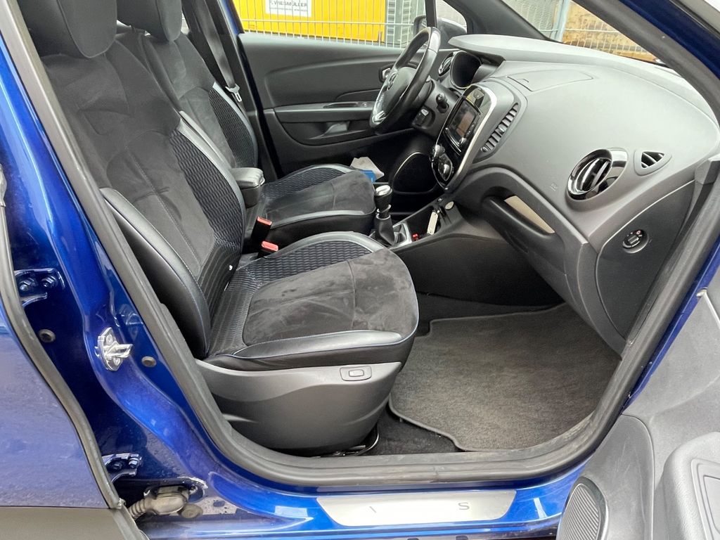 Weitere Ausstattung:2-Farben-Lackierung, Airbag Beifahrerseite abschaltbar, Airbag Fahrer-/Beifahrerseite, Anti-Submarining-Airbag im Fond, Antischlupfregelung (ASR), Audio-Navigationssystem R-Link Evolution mit Touchscreen und Carminat TomTom, Außenspiegel asphärisch, links, Außenspiegel elektr. anklappbar, Außenspiegel elektr. verstell- und heizbar, Außentemperaturanzeige, Blinkleuchten LED in Außenspiegel integriert, Bordcomputer, Bremsassistent, Dach, Außenspiegel und A-Säule Kontrastfarbe, Dachhimmel Schwarz, Eco Mode (Fahrmodusschalter), Einparkhilfe vorn und hinten, Einstiegsleisten mit Modell-Schriftzug, Elektr. Bremskraftverteilung, Energierückgewinnung (Energy Smart Management), Fahrassistenz-System: Berganfahr-Assistent (HSA), Gepäckraumabdeckung / Rollo, Geschwindigkeits-Begrenzeranlage, Gurtstraffer, Handschuhfach mit LED-Beleuchtung, Heckleuchten LED, Heckscheibe heizbar, Innenausstattung: Ziernähte farbig, Innenspiegel mit Abblendautomatik, Isofix-Aufnahmen für Kindersitz, Isofix-Aufnahmen für Kindersitz an Beifahrersitz, Karosserie: 5-türig, Klimaautomatik, Kopfstützen verstellbar, Lenksäule (Lenkrad) höhenverstellbar, Lenksäule (Lenkrad) längsverstellbar, Leseleuchte vorn, LM-Felgen, Look-Paket Grau (außen), Mittelarmlehne vorn mit Ablagefach, Modellpflege, Motor 1,3 Ltr. - 110 kW TCE Energy, Pedale Aluminium, Radstand 2606 mm, Reifen-Reparaturkit, Reifendruck-Kontrollsystem, Rücksitzbank geteilt/klappbar (1/3-2/3), Rücksitzbank verschiebbar, Schadstoffarm nach Abgasnorm Euro 6, Schaltpunktanzeige, Scheibenwischer mit Intervallschaltung, Seitenairbag vorn, Seitenschutzleisten grau, Sicherheitsgurte vorn höhenverstellbar, Sitz vorn links höhenverstellbar, Sitzbezug / Polsterung: Alcantara / Stoff, Sitzheizung vorn, Sonderlackierung Metallic Black Pearl schwarz, Sonderlackierung Metallic Iron blau, Sonnenblenden mit Spiegel (beleuchtet), Start/Stop-Anlage, Türgriffe außen Wagenfarbe, Untersteuerungskontrolle (USC), Verglasung hinten abgedunkelt (Privacy Glass), Vision-Paket
