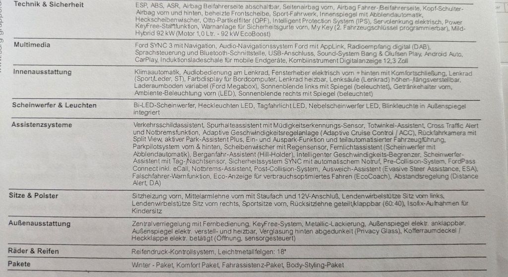 Um mehr über die Ausstattung des Autos zu erfahren schauen Sie sich bitte das beigefügte Bild an.