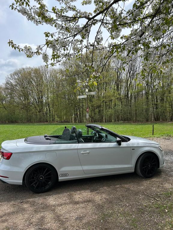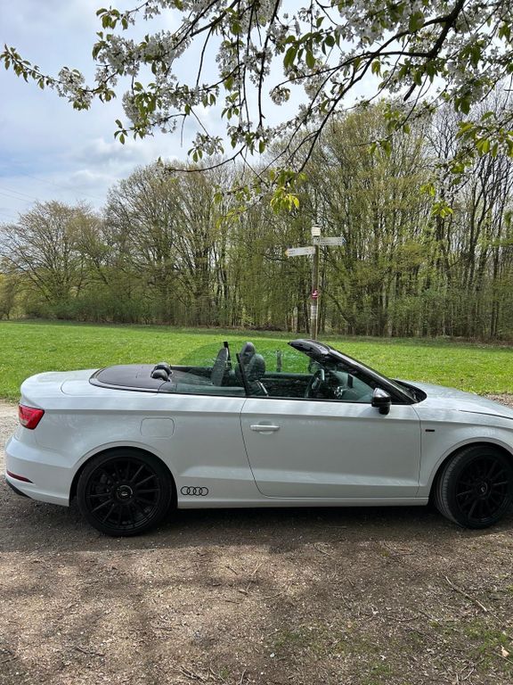 Verkaufe ein sehr schönes Audi Cabriolet in weiß auf schwarzen Alufelgen. S-Line Sport Paket Plus-Akustik Verdeck, Aufi Connect-Einstiegsleisten beleuchtet-Alu Sommerreifen 8x18 5 Arm Pylon Design Titanoptik Matt + Alu Winterreifen -Alu Pedale-Alcantara/Leder Sportsitze mit ausziehbare Oberschenkelsuflage-Fahrer Informations System FIS mit Farbdisplay …. Weitere Ausstattung siehe Bild. Tiefer/BreiterTÜV auf Wunsch neu