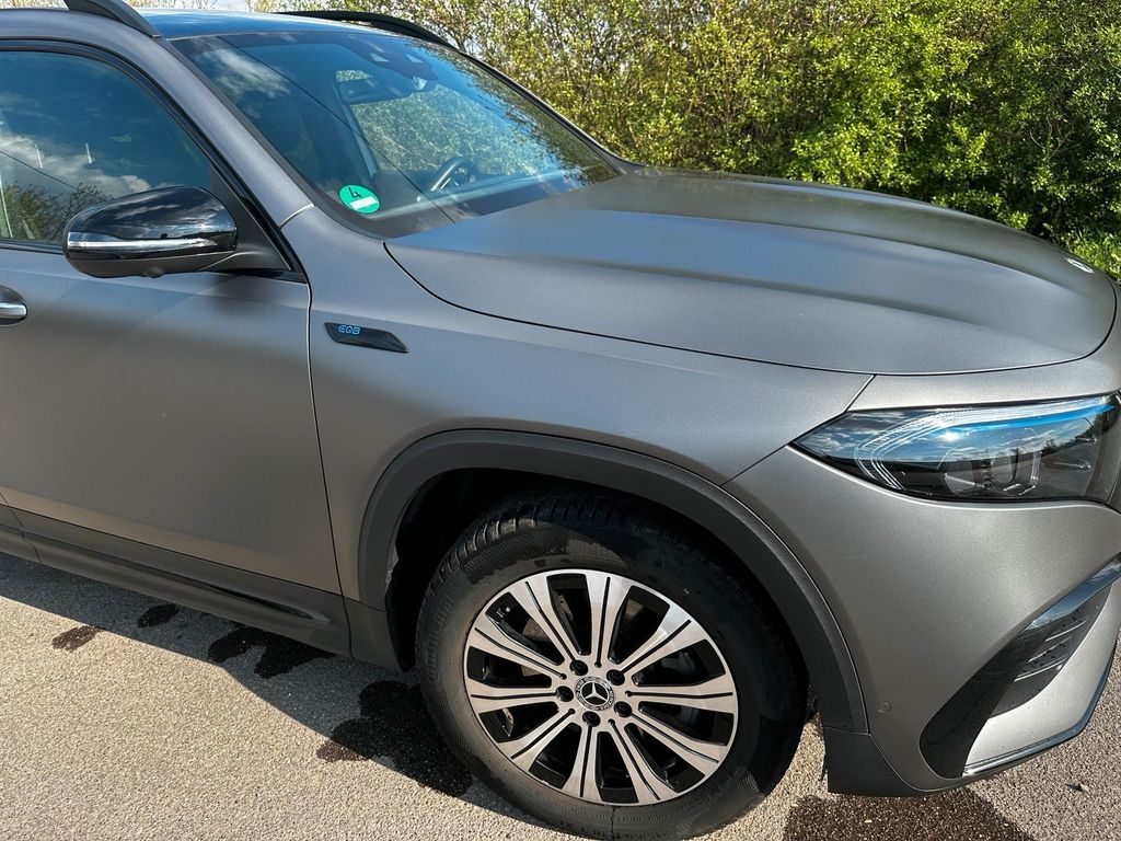 Mercedes-Benz EQB 300 4MATIC in der sportlichen AMG Line.Die markante Außenfarbe ist das matte MANUFAKTUR Mountaingrau Magno.