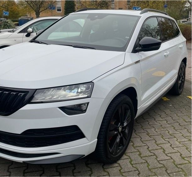 Skoda Karoq Sportline 2.0 TSI 4x4 Panoramadach Keyless Scheckheft Top ZustandZum Verkauf steht ein gepflegter Skoda Karoq 2.0 TSI 4x4 Sportline mit DSG in Weiß mit sehr guter Ausstattung und sportlicher Optik.