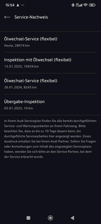 Lückenloser Service alle 8/10.000 km Öl und Inspektionen jährlich bei Audi erneuert.