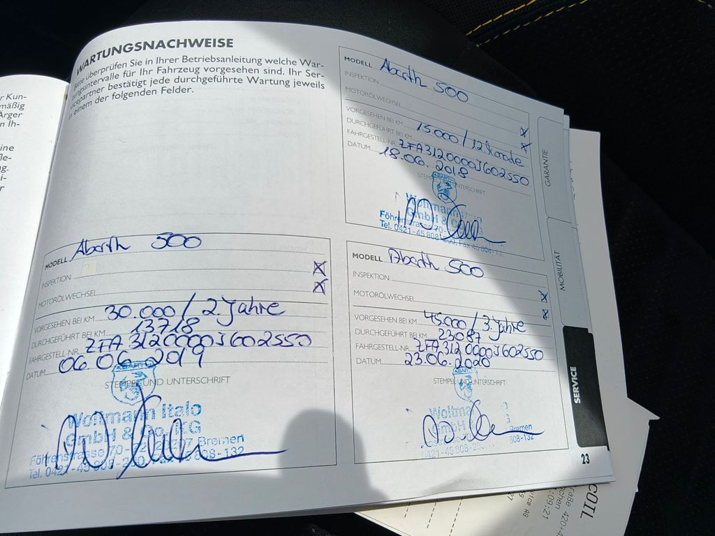 Service vor mir bis 2020 45000er Service habe ich von Fiat in Ersatzserviceheft (Original wurde verloren) nachtragen lassen, das Autohaus in Miesbach gibt es leider nicht mehr, wo mein Vorbesitzer ihn gekauft hat, da fehlt leider ein Stempel. Ab 2022 in meiner Hand und bei meinem Spezi mit Werkstatt alles vorsichtshalber nachgeholt.