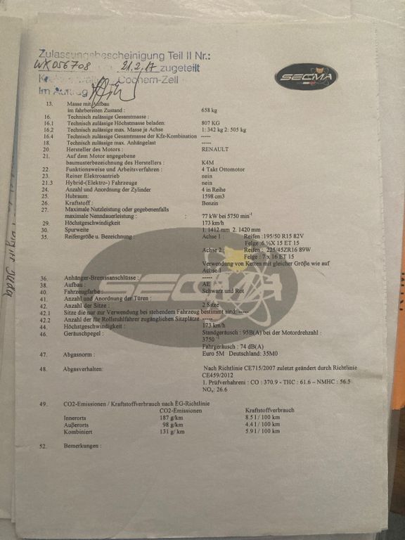 - Emise CO₂ g/km