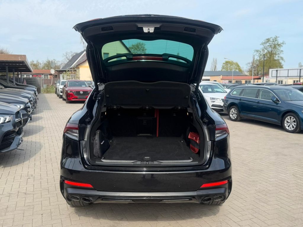 Weitere Ausstattung:8 Lautsprecher, Airbag Beifahrerseite abschaltbar, Airbag Fahrer-/Beifahrerseite und Seitenairbag vorn, Anhänger-Stabilisierungs-Programm, Antriebsart: Allradantrieb, Auspuffanlage (Doppelauspuffblende) mit Endrohre verchromt, Außenspiegel elektr. verstell-, heiz- und anklappbar, Außenspiegel schwarz, Außentemperaturanzeige, Bordcomputer mit Farbdisplay, Bremsanlage: Brembo, Bremsassistent (HBA), Bremssättel schwarz lackiert, DAB-Tuner (Radioempfang digital), Dachhimmel Stoff, Differentialsperre (Hinterachse), Doppelverglasung, Einparkhilfe vorn und hinten, Einstiegsleisten (Edelstahl), Elektr. Bremskraftverteilung (EBD), Elektron. Traktionskontrolle, Exterieurumfänge Sport, Fahrassistenz-System: Antriebsmomentkontrolle (Torque Vectoring), Fahrassistenz-System: Bergabfahr-Assistent, Fahrassistenz-System: Berganfahrhilfe, Fahrassistenz-System: Notbrems-Assistent (BAS), Fahrmodusschalter, Fahrwerk elektronisch geregelt (Skyhook), Fensterheber elektrisch vorn + hinten, Fensterrahmen schwarz, Frontscheibe Verbundglas, Fußmatten Velours, Gepäckraumabdeckung / Rollo, Getriebe Automatik - mit manueller Schaltmöglichkeit (8-Stufen), Handschuhfach elektr. betätigt, Handschuhfach mit Kühlfunktion, Heckleuchten LED, abgedunkelt, Heckscheibe heizbar, Heckspoiler Sport, Innenausstattung: Interieureinlagen Pianoschwarz, Innenausstattung: Naturleder, Innenspiegel mit Abblendautomatik, Isofix-Aufnahmen für Kindersitz an Rücksitz, Karosserie: 5-türig, Keyless-Entry, Keyless-Entry & Go, Klimaautomatik 2-Zonen, Kofferraumbetätigung freihändig, Kofferraumdeckel / Heckklappe elektr. betätigt (öffnen + schliessen), Kopf-Airbag-System (Windowbag), Kopfstützen mit Geprägter Dreizack, Kühlergrill schwarz mit Chromleiste, Ladekantenschutz (Edelstahl), Lenkrad (Sport/Leder - 3-Speichen) mit Multifunktion, Lederfarbe schwarz, Lenksäule (Lenkrad) elektr. verstellbar (vertikal / axial), Leseleuchten vorn und hinten, LM-Felgen, Luftfederung elektronisch geregelt, Matrix-LED-Scheinwerfer, Mittelarmlehne hinten mit Getränkehalter, Mittelarmlehne vorn mit klimatisiertem Staufach und 12V-Anschluß, Motor 3,0 Ltr. - 316 kW V6 TwinTurbo KAT, Motor-Schleppmoment-Regulator (MSR), Multimedia-System Maserati Touch Control (inkl. 8,4 Zoll Touchscreen-Farbdisplay, DVD-Player, SD-Karten-Schnittstelle), Nebelscheinwerfer LED, Nebelscheinwerfer mit Einfassung schwarz, Parkbremse elektrisch (EPB), Pedalerie Edelstahl, Pedalerie elektr. einstellbar, Radstand 3004 mm, Reifendruck-Kontrollsystem, Rücksitzlehne geteilt/klappbar (60:40), Schadstoffarm nach Abgasnorm Euro 6d, Soft-Close-Automatik für Türen, Sonnenblenden mit Spiegel (beleuchtet), Sportendrohre 4-Rohr-Optik, schwarz, Sportsitze vorn elektr. verstellbar (links mit Memory), Sprachbedienung Smart Personal Assistent (SIRI), Start-Stop-Knopf, Start/Stop-Anlage, Steckdose (12V-Anschluß) im Fond, Steckdose (12V-Anschluß) im Koffer-/Laderaum, Stoßfänger / Radkästen / Seitenschürzen Wagenfarbe, Telematik-System Maserati Call, Uni-Lackierung