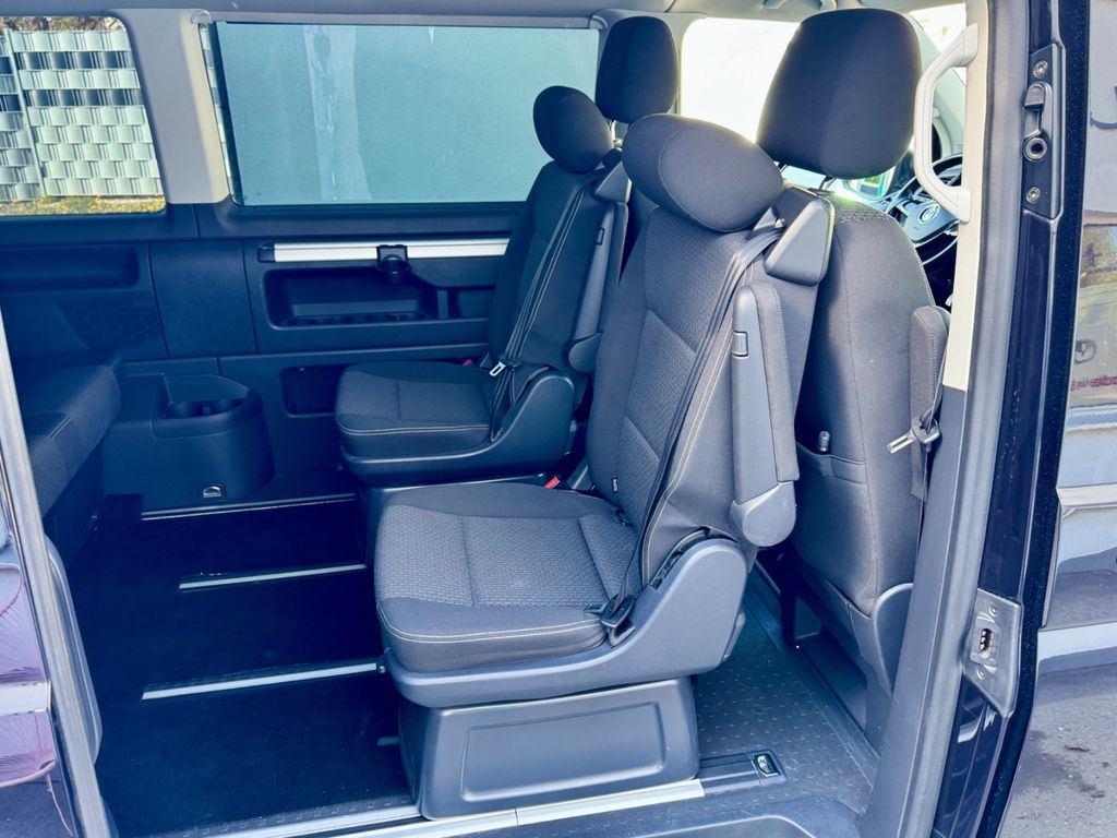 Audio-Navigationssystem Discover Media (Touchscreen-Farbdisplay), Ausstattungs-Paket Licht + Sicht Plus, Außenspiegel elektr. verstell-, heiz- und anklappbar, Fahrassistenz-System: Einparkhilfe vorn und hinten, Fahrwerk tiefergelegt, Freilaufkupplung für Doppelkupplungsgetriebe, Frontscheibe Dämmglas, heizbar, Heckklappe elektr. betätigt (öffnen + schliessen) mit Zuziehhilfe, Klimaautomatik Climatronic (Fahrerhaus + Lade-/Fahrgastraum), Lackierung: Perleffekt-Lackierung, Multifunktionsanzeige Plus, Radkappen, Scheibenwaschdüsen beheizt und Anzeige für Waschwasserstand, Schiebetür Lade-/Fahrgastraum rechts elektr. betätigt, Verglasung hinten abgedunkelt, Zusatzheizung (Warmwasser) mit Standheizfunktion und Fernbedienung, Abdeckung Schiebetürleiste, Airbag Beifahrer abschaltbar, Airbag Fahrer-/Beifahrerseite, Außenspiegel asphärisch, links, Außenspiegel konvex, rechts, Außenspiegel und Türgriffe außen schwarz, Bodenbelag im Fahrerhaus: Teppich, Bodenbelag im Lade-/Fahrgastraum Kunststoff, Campingtisch, Doppeltonfanfare, Fahrassistenz-System: Bremsassistent (HBA), Fahrassistenz-System: Multikollisionsbremse (Multi Collision Brake), Fenster im Lade-/FG-Raum: - feststehend, vorn und hinten links, Fenster im Lade-/FG-Raum: - feststehend, vorn und hinten rechts, Funkschlüssel (2) klappbar, Haltegriffe A-Säulen, Handschuhfach abschließbar, Heckklappe mit Verglasung, Heckscheibe heizbar, mit Wischanlage, Innenleuchten im Lade-/FG-Raum: Trittstufenleuchten, Innenraumfilter: Pollenfilter, Karosserie/Aufbau: Bus, Kindersicherung an den Schiebetüren, Kraftstofftank: 70 Ltr., Lenksäule (Lenkrad) verstellbar, Mobiltelefon Schnittstelle Bluetooth, Motor 2,0 Ltr. - 110 kW TDI, Nichtraucher-Paket, Radstand 3000 mm, Reifen-Reparaturkit, Reifenkontroll-Anzeige, Schadstoffarm nach Abgasnorm Euro 6, Schiebetür Lade-/Fahrgastraum rechts, SCR-System (AdBlue-Technologie), Seitenairbag / Kopfairbag (Curtain-Airbag) vorn, Sitzbezug / Polsterung: Stoff, Sitze im Fahrerhaus: Beifahrersitz Komfort, Sitze im Fahrerhaus: Fahrer- und Beifahrersitz höhenverstellbar, Sitze im Fahrerhaus: Fahrersitz Komfort, Sitze im Fahrerhaus: Lendenwirbelstützen Fahrer- und Beifahrersitz, Sitze im Lade-/FG-Raum: 2.Reihe, 3er-Sitzbank, Sonnenblenden mit Spiegel, Stahlfelgen 6,5x16, Start/Stop-Anlage Motor, Steckdose (12V-Anschluß) im Fahrerhaus, Stoßfänger in Wagenfarbe, Wärmeschutzverglasung, Zentralverriegelung mit Fernbedienung und Innenbetätigung, Zuheizer, Zul. Gesamtgewicht 3,00 t