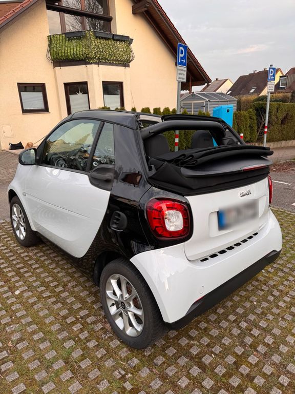 Smart Fortwo Cabrio 2019 64.000 km TÜV 2028 Sitzheizung Neue BatterieZum Verkauf steht ein sehr gepflegtes Smart Fortwo Cabrio (Baujahr 2019). Das Fahrzeug befindet sich in einem guten technischen und optischen Zustand und wurde stets zuverlässig gefahren. Durch seine kompakte Größe ist der Smart perfekt für die Stadt und lässt sich überall problemlos parken.