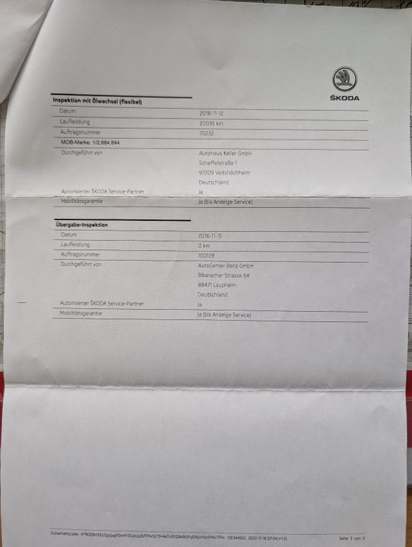 - Scheckheft durchgehend gepflegt bei Skoda.