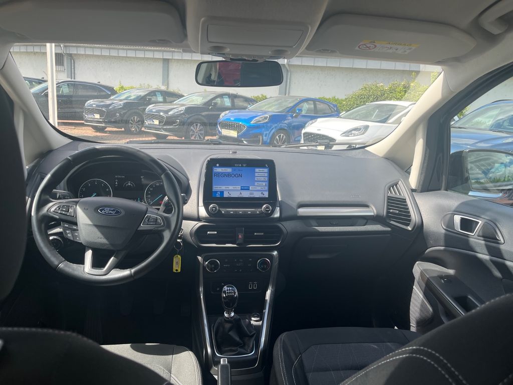 Dieser gepflegte Ford EcoSport SUV aus dem Jahr 2018 bietet ein ausgezeichnetes Preis-Leistungs-Verhältnis für Fahrer, die Vielseitigkeit und Komfort suchen. Der sparsame 3-Zylinder Benzinmotor mit 125 PS und 998 ccm Hubraum erfüllt die Euro 6 Norm und sorgt für angenehme Fahrleistungen bei gleichzeitig moderatem Verbrauch. Der Frontantrieb und das manuelle Getriebe bieten eine gute Kontrolle auf verschiedenen Straßenbelägen.Die schwarze Metallic-Lackierung verleiht dem Fahrzeug einen eleganten Auftritt, während die Innenausstattung in schwarzem Stoff praktisch und komfortabel ist. Zur umfangreichen Sicherheitsausstattung gehören Front- und Seitenairbags, ABS, ESP und Berganfahrhilfe. Das Winterpaket mit beheizbarer Frontscheibe und Sitzheizung macht den EcoSport zum idealen Begleiter für alle Jahreszeiten.