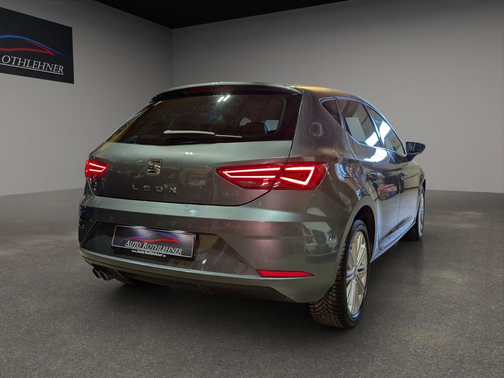 Ablagetasche an Vordersitzlehnen, Airbag Beifahrerseite abschaltbar, Airbag Fahrer-/Beifahrerseite, Antriebs-Schlupfregelung (ASR), AUX-IN-Anschluss und 2 x USB-Anschluss, Außenspiegel elektr. verstell- und heizbar, beide, Außenspiegel und Türgriffe außen in Wagenfarbe, Außentemperaturanzeige, Blinkleuchten LED in Außenspiegel integriert, Bordcomputer, Bremsassistent, Chromleisten an Seitenfenstern, Elektron. Differentialsperre (EDS), Fahrassistenz-System: Berganfahr-Assistent (Hill-Holder), Fahrassistenz-System: Berganfahr-Assistent und Elektron. Differentialsperre, Fahrassistenz-System: Umfeldbeobachtungssystem (Front assist) mit City-Notbremsfunktion, Fensterheber elektrisch hinten, Handschuhfach beleuchtet, Innenausstattung: Chrom-Applikationen, Isofix-Aufnahmen für Kindersitz, Karosserie: 5-türig, Knieairbag Fahrerseite, Kopf-Airbag-System, Kopfstützen hinten (3-fach), Kopfstützen vorn verstellbar, Lendenwirbelstütze Sitz vorn links, verstellbar, Lenkrad (Sport/Leder), LM-Felgen, Mittelkonsole vorn mit Mittelarmlehne, Becherhalter, Ablagebox und Luftdüsen hinten, Modellpflege, Motor 1,4 Ltr. - 92 kW 16V TSI, Parkbremse elektrisch, Reifenkontroll-Anzeige, Rücksitzlehne geteilt/klappbar (1/3-2/3), Schadstoffarm nach Abgasnorm Euro 6, Schalt-/Wählhebelgriff Leder, SEAT Media-System Plus, Seitenairbag, Seitenscheiben hinten und Heckscheibe abgedunkelt, Sitz vorn links höhenverstellbar, Sitz vorn rechts höhenverstellbar, Sonnenblende links mit Spiegel (beleuchtet), Sonnenblende rechts mit Spiegel (beleuchtet), Start/Stop-Anlage, Startanlage Keyless Access, Stau-/Ablagefach unter Sitze vorn, Steckdose (12V-Anschluß) vorn, Stoßfänger lackiert, Wärmeschutzverglasung, Seitenscheiben hinten und Heckscheibe abgedunkelt