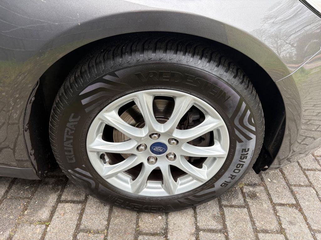 Antischlupfregelung (ASR) + ABS, Audio-Navigationssystem Ford SD (mit Ford SYNC), Außenspiegel elektr. anklappbar, Außenspiegel elektr. verstell- und heizbar, Außenspiegel Wagenfarbe, Blinkleuchte in Außenspiegel integriert, Bordcomputer, Coming-Home-Lichtfunktion, Dachreling (Aluminium), Einstiegschienen vorn, Elektr. Bremskraftverteilung (EBD), Fahrassistenz-System: Berganfahr-Assistent (Hill-Holder), Fahrassistenz-System: Notbrems-Assistent, Fensterheber elektrisch vorn + hinten mit Komfortschließung, Fernentriegelung Heckklappe/-Deckel, Fußmatten Teppich, Gepäckraumabdeckung / Rollo, Innenraumfilter: Pollenfilter, Intelligent Protection System (IPS), Isofix-Aufnahmen für Kindersitz, Karosserie: 5-türig, Kindersicherung elektrisch, Klimaautomatik 2-Zonen, Kühlergrill schwarz, Lendenwirbelstütze vorn, Lenksäule (Lenkrad) höhen-/längsverstellbar, Leseleuchte vorn, Leseleuchten im Fond, LM-Felgen, Mittelarmlehne hinten, Motor 1,5 Ltr. - 88 kW TDCi KAT, My Key (2. Fahrzeugschlüssel programmierbar), Parkbremse elektrisch, Parkpilotsystem vorn und hinten, Reifendruck-Kontrollsystem, Reserverad als Notrad, Rücksitzlehne geteilt/klappbar (60:40), Schadstoffarm nach Abgasnorm Euro 6, Schalt-/Wählhebelgriff Leder, Sitz vorn links höhenverstellbar, Sitz vorn rechts höhenverstellbar, Sitz vorn rechts verstellbar (4-fach), Sonnenblende links mit Spiegel (beleuchtet), Sonnenblende rechts mit Spiegel (beleuchtet), Start/Stop-Anlage, Steckdose (12V-Anschluß) im Koffer-/Laderaum, Türgriffe außen lackiert, Warnanlage für Sicherheitsgurte hinten