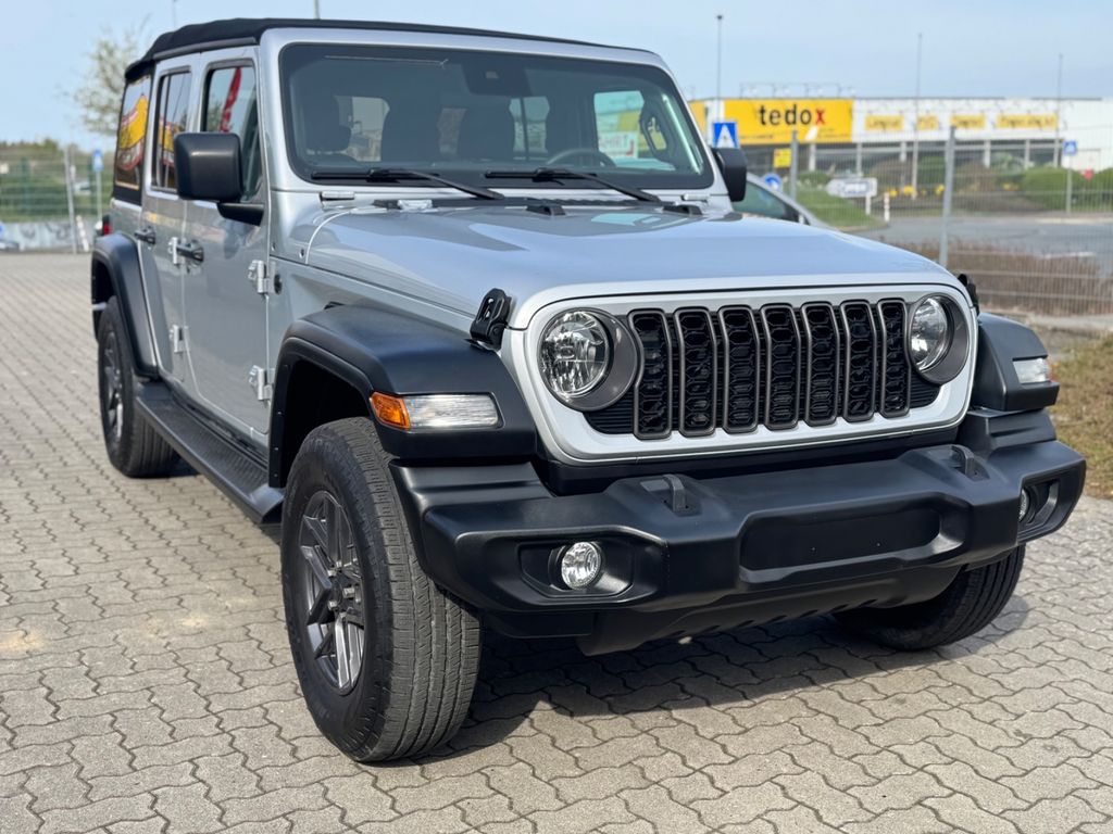 Dieser Jeep Wrangler aus 2024 mit nur einem Vorbesitzer bietet echtes Offroad-Erlebnis mit modernem Komfort. Der 3,6-Liter-Motor mit 6 Zylindern liefert kraftvolle 290 PS und wird durch Allradantrieb optimal auf jedes Terrain übertragen. Die silberne Metallic-Lackierung harmoniert perfekt mit den Leichtmetallrädern und dem abnehmbaren Dach für grenzenlose Freiheit. Im schwarzen Stoffinterieur genießen Sie Annehmlichkeiten wie die 2-Zonen-Klimaautomatik, beheizbare Sitze und elektrisch verstellbare Vordersitze.Die moderne Technik umfasst ein Navigationssystem mit Touchscreen, Apple CarPlay, Android Auto und WLAN-Hotspot. Sicherheit wird großgeschrieben mit zahlreichen Assistenzsystemen wie Spurhalteassistent, Kollisionsvermeidung, Totwinkelassistent und adaptivem Tempomat. Die LED-Scheinwerfer mit Kurvenlichtfunktion und Fernlichtassistent sorgen für optimale Sicht.