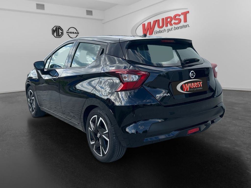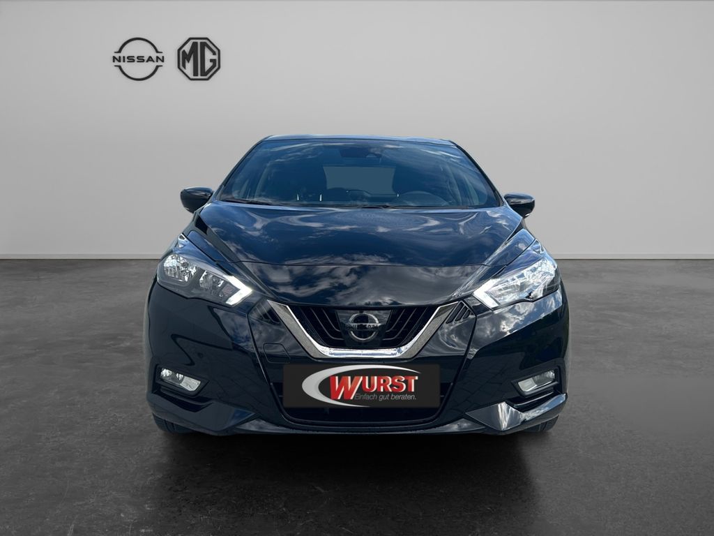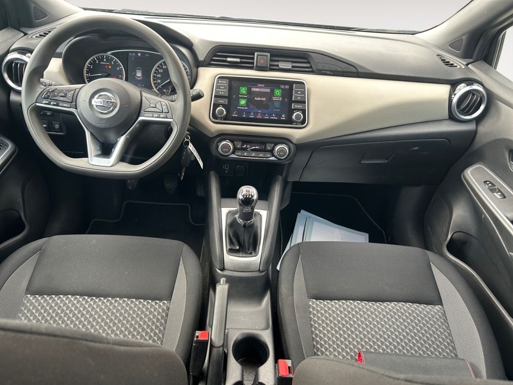- Weiteres: BORDCOMPUTER, Reifendruck-Kontrollsystem, Leuchtweitenregelung automatisch, Sitzbezug / Polsterung: Stoff, Geschwindigkeits-Regelanlage (Tempomat), Lenksäule (Lenkrad) höhen-/längsverstellbar, Scheibenwischer mit Regensensor, Reifen-Reparaturset, Dachspoiler, Einparkhilfe hinten, Touchscreen-Farbdisplay (7,0 Zoll) in Mittelkonsole, Schadstoffarm nach Abgasnorm Euro 6d, Audiosystem: Radio mit USB / iPod-Anschluss und Bluetooth-Schnittstelle, Innenraumfilter: Pollenfilter, Audio-Paket, Nebelscheinwerfer, Tagfahrlicht LED, Fensterheber elektrisch vorn, Wegfahrsperre (elektronisch), Airbag Fahrer-/Beifahrerseite und Seitenairbag vorn, Automatische Fahrlichtschaltung, Kopf-Airbag-System, USB-Schnittstelle, Getriebe 5-Gang, AUX-IN-Anschluss (AUX-IN), Gepäckraumabdeckung / Rollo, Außenspiegel elektr. verstellbar, Anti-Blockier-System (ABS), Metallic-Lackierung, Audiobedienung am Lenkrad, Audiosystem mit Hochtönern, Außenspiegel elektr. anklappbar, Außenspiegel Wagenfarbe, Außentemperaturanzeige, Ausstattungs-Paket: Nissan Connect Navigationssystem, Autonomer Notbrems-Assistent, Beifahrerairbag abschaltbar, Berg-Anfahr-Assistent, Blinkleuchten LED in Außenspiegel integriert, Bluetooth-Schnittstelle, Bremsassistent, Bremsassistent (Nissan Brake-Assist), Comfort-Paket, Drehzahlmesser, Elektr. Bremskraftverteilung (EBD), Elektron. Stabilitäts-Programm, Fensterheber elektrisch vorn und hinten, Fernlichtassistent, Fußgängererkennung, Geschwindigkeits-Begrenzeranlage, Getränkehalter hinten, Getränkehalter vorn, Gurtstraffer, Heckscheibe heizbar, Heckscheibenwischer, Isofix-Aufnahmen für Kindersitz, Klimaautomatik, Leseleuchte, Motor 1,0 Ltr. - 68 kW 12V KAT, Navigationssystem, Radioempfang Digital (DAB), Safety-Paket, Sitzheizung vorn, Sitzhöhenverstellung Fahrersitz, Sportlenkrad, Sprachbediensystem Spracherkennung, Spurhalteassistent, Start/Stop-Anlage, TFT-Farbdisplay (5,0 Zoll), Verkehrszeichenerkennung, Winter-Paket, ZV mit Fernbedienung