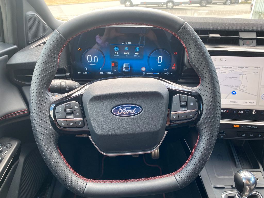 - Audio-Navigationssystem Ford Cloud-Navigationssystem (Sprachsteuerung und Bluetooth-Schnittstelle - Vorrüstung Mobiltelefon/Handy mit Bluetooth-/USB-Schnittstelle - USB-Anschlüsse (2) vorn - USB-Anschluss - FordPass Connect inkl. eCall - Sicherheitssystem SYNC mit automatischem Notruf - Smartphone-Integration (Apple CarPlay und Android Auto) - Kombiinstrument Digitalanzeige 12.8 Zoll)