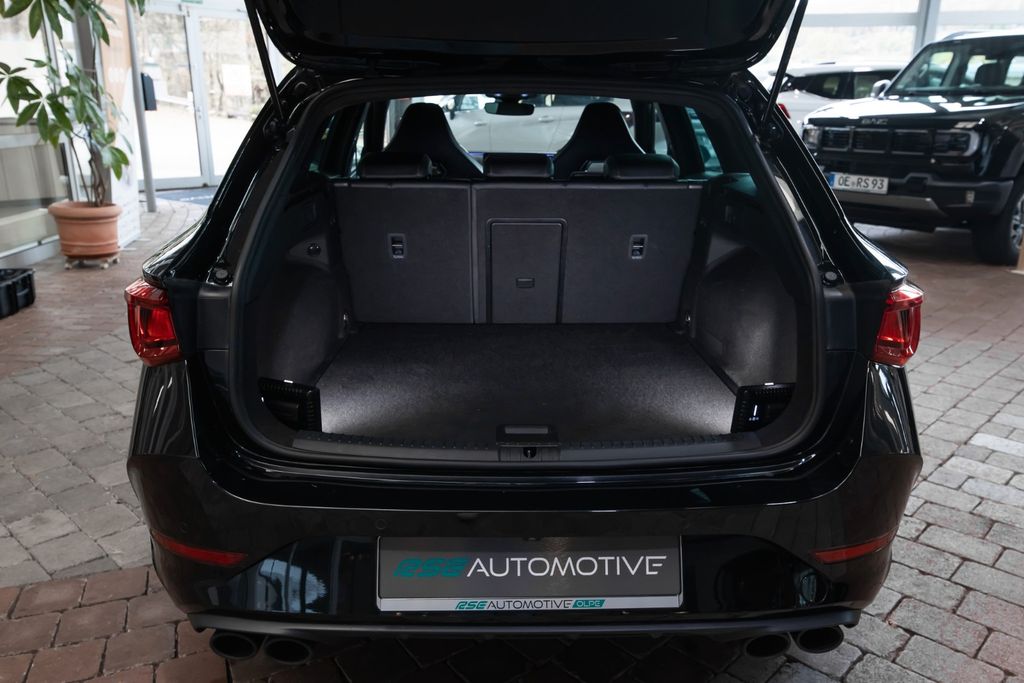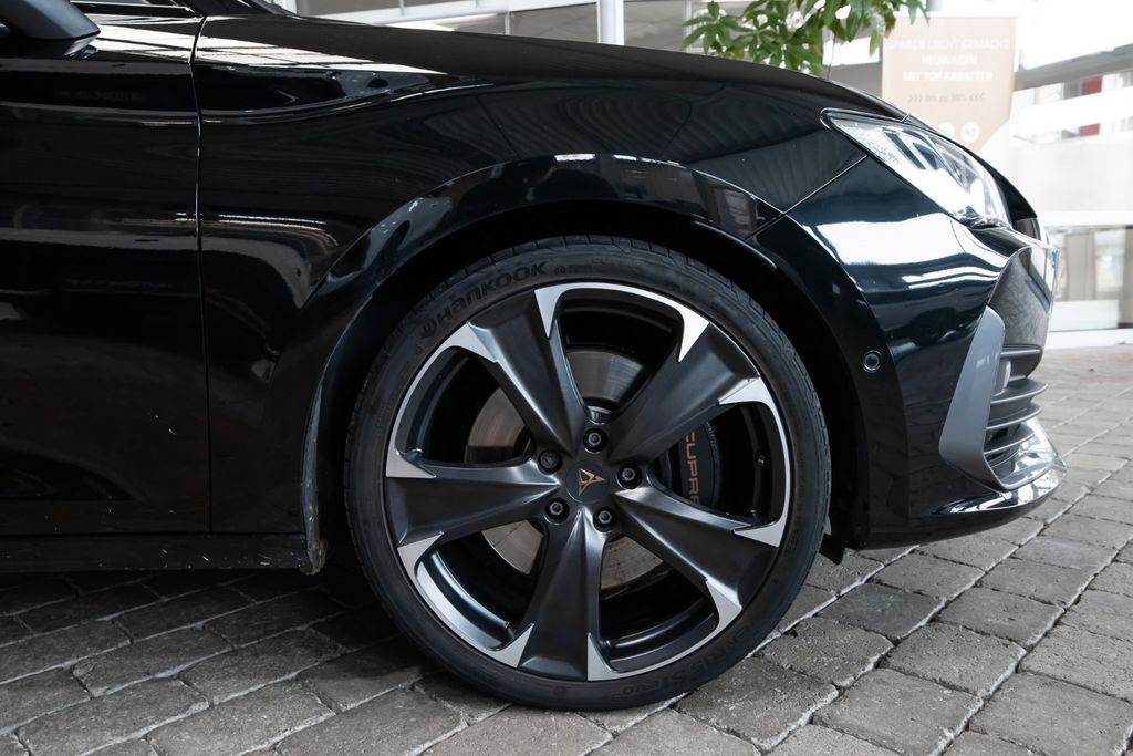 6 Lautsprecher, Airbag Beifahrerseite abschaltbar, Airbag Fahrer-/Beifahrerseite, Ambiente-Beleuchtung Smart Ambient Light, Antriebs-Schlupfregelung (ASR), Audio-Navigationssystem mit Touchscreen Farbbildschirm, Außenspiegel elektr. verstell-, heiz- und anklappbar mit Spiegelabsenkung und Welcome Light, Blinkleuchten LED in Außenspiegel integriert, Dachreling schwarz, hochglänzend, Doppeltonhorn, Einstiegsleisten (Aluminium) vorn, beleuchtet, Elektron. Differentialsperre (XDS), Fahrassistenz-Paket XL, Fahrassistenz-System: Adaptive Fahrwerksregelung (DCC), Fahrassistenz-System: Fahrprofilauswahl (CUPRA Drive Profile), Fensterheber elektrisch vorn + hinten mit Komfortschaltung, Fensterzierleisten schwarz hochglänzend, Gepäckraumabdeckung / Rollo, Heckleuchten LED mit dynamischem Blinklicht, Heckleuchten Voll-LED mit dynamischem Lichtband (Infinite Light), Isofix-Aufnahmen für Kindersitz an Rücksitz, Karosserie: 5-türig, Klimaanlage Climatronic 3-Zonen, Kombiinstrument digital (virtual cockpit), Kopf-Airbag-System, Laderaumboden variabel und herausnehmbar, Lendenwirbelstütze Sitz vorn links, verstellbar, Lendenwirbelstütze Sitz vorn rechts, verstellbar, Licht- und Sicht-Paket, LM-Felgen, Mittelarmlehne hinten, Mittelkonsole vorn mit Mittelarmlehne, Becherhalter, Ablagebox und Luftausströmer hinten, Mobile Online Dienste Cupra Connect, Motor 2,0 Ltr. - 228 kW 16V TSI, Notrufsystem, Parkbremse elektrisch, Radioempfang digital (DAB+), Reserverad als Notrad, Rücksitzlehne geteilt/klappbar (1/3-2/3), Rücksitzlehnen umklappbar mit Fernentriegelung im Kofferraum, Schadstoffarm nach Abgasnorm Euro 6d, Seitenairbag, Seitenairbag vorn mitte (Central Airbag), Seitenscheiben hinten und Heckscheibe abgedunkelt, Sitz vorn links höhenverstellbar, Sitz vorn rechts höhenverstellbar, Sitzbezug / Polsterung: Stoff, Sonnenblende links mit Spiegel (beleuchtet), Sonnenblende rechts mit Spiegel (beleuchtet), Sport-Schalensitze vorn mit integrierten Kopfstützen, Start/Stop-Anlage, Steckdose (12V-Anschluß) im Koffer-/Laderaum, USB-Ladeanschlüsse (2-fach, Typ C) für 2.Sitzreihe, USB-Schnittstelle vorn (2-fach, Typ C), Verzurrösen Koffer-/Laderaum, Warnanlage für Sicherheitsgurt-System, Wärmeschutzverglasung