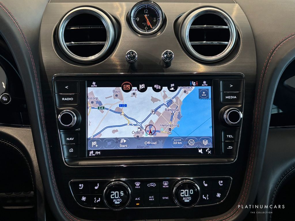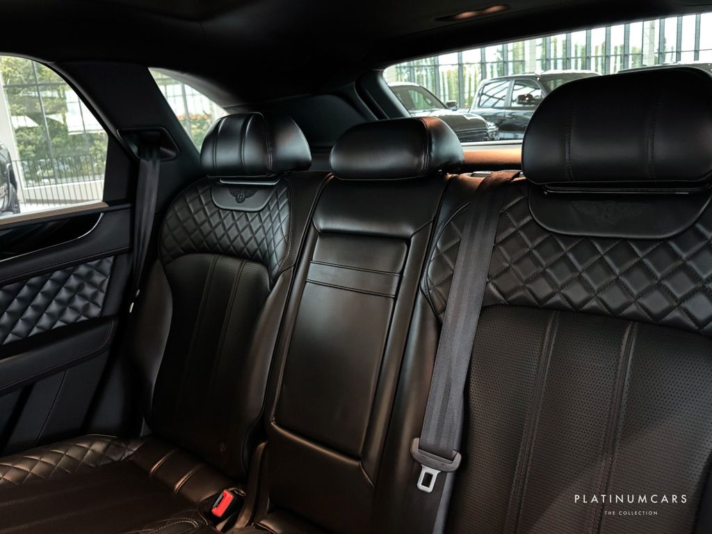 Equipment: Touring specification, City specification, Front seat comfort specification, Body colored lover bodywork - standard paint range, Leather specification - upper cabin, Panoramic roof, Head-Up display, 3-spoke steering wheel - heated, Hand stitching to steering wheel in contrast stitching colour, Navigation, Bentley signature audio, Online services, Bluetooth, 22-way front seats with memory, Ventilated & heated front seats with massage function, Comfort headrests to front seats, Rear headrests, Seat heat in back seats, Embroidered Bentley emblems, Diamond quilted hide seats, Leather roof, Interior color split - C, Bentayga clock, Center fascia panel in technical finish, Drilled alloy sport foot pedals, Hide trimmes gear lever, Treadplates with Bentley logo, Piano black - interior details, Bentley dynamic ride, Driver assistance system, Adaptive cruise control, Night vision, Blind spot assist, Exit warning, City safeguard, Traffic sign reco, Top view camera, ParkAssist, Keyless entry, Follow-me-home lightning, Headlight washer, Black matrix style grille to lower bumper aperture, Bright chrome fittings to windows and doors, Bright tint rear light cluster, Painted radiator shell with bright chrome matrix style grille, Jewel fuel filler cap, Narrow fuel filler neck, Roof rails, Rear privacy glass, Head - acoustic - IR front screen, Electrically mirrors with heating, Space saving spare wheel, 21" rims, ABS, Anti-spin/Anti-skid, Alarm, etc.