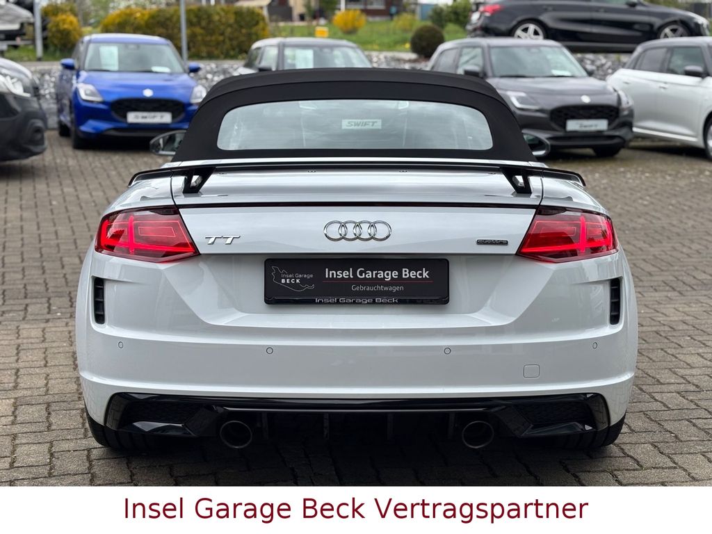 Airbag Beifahrerseite abschaltbar, Airbag Fahrer-/Beifahrerseite, Akustik-Verdeck, Antriebs-Schlupfregelung (ASR) mit EDS, Audi Drive Select, Außenspiegel elektr. verstell- und heizbar, Blinkleuchten LED in Außenspiegel integriert, Fahrassistenz-System: Spurhalteassistent (active lane assist), Funkschlüssel, Fußgänger-Schutzsystem, Heckscheibe heizbar, Isofix-Aufnahmen für Kindersitz an Beifahrersitz, Karosserie: 2-türig, Kopf-Airbag-System (Sideguard), Motor 2,0 Ltr. - 180 kW 16V TFSI, Multi-Media-Interface MMI Basic / MMI Radio, Nichtraucher-Paket, Otto-Partikelfilter (OPF), Progressivlenkung, Reifen-Reparaturkit, Reifenkontroll-Anzeige, Schadstoffarm nach Abgasnorm Euro 6d-TEMP, Scheibenwaschdüsen heizbar, Seitenairbag vorn, Start/Stop-Anlage, Tankdeckel Alu-Optik, Universal-Schnittstelle Bluetooth, Verdeckbetätigung vollautomatisch, Verdeckbezug Stoff Schwarz, Wärmeschutzverglasung grün getönt, App-Connect Wireless (Apple CarPlay, Android Auto, MirrorLink), Sitze: Top-Sportsitze vorn, Innenspiegel automatisch abblendend, Sitzheizung vorn