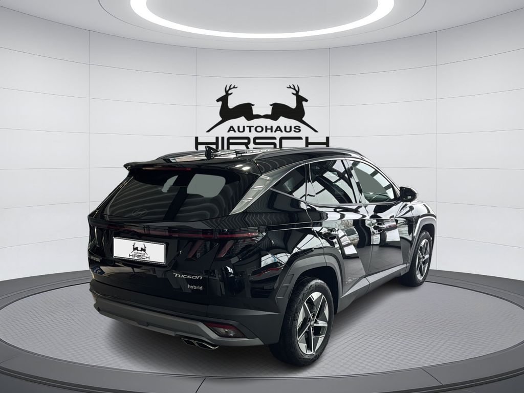 Der neue Hyundai Tucson Hybrid vereint moderne Technologie mit Effizienz und Komfort. Dieses SUV mit Frontantrieb und Automatikgetriebe bietet eine Leistung von 215 PS aus seinem 1,6-Liter-Vierzylinder-Hybridmotor. Die schwarze Außenlackierung harmoniert perfekt mit dem schwarzen Stoffinterieur. Die umfangreiche Sicherheitsausstattung umfasst Front-, Seiten- und weitere Airbags, Spurhalteassistent, Totwinkelwarner und Kollisionsvermeidungssystem. Der Tucson überzeugt mit Zwei-Zonen-Klimaautomatik, beheizbaren Vordersitzen und beheiztem Lenkrad. Das digitale Cockpit mit Touchscreen, Navigationssystem und kabelloser Ladestation für Smartphones bietet modernsten Komfort. Apple CarPlay und Android Auto sind selbstverständlich integriert.- Hybrid-Antrieb mit 215 PS und Euro 6e Emissionsklasse