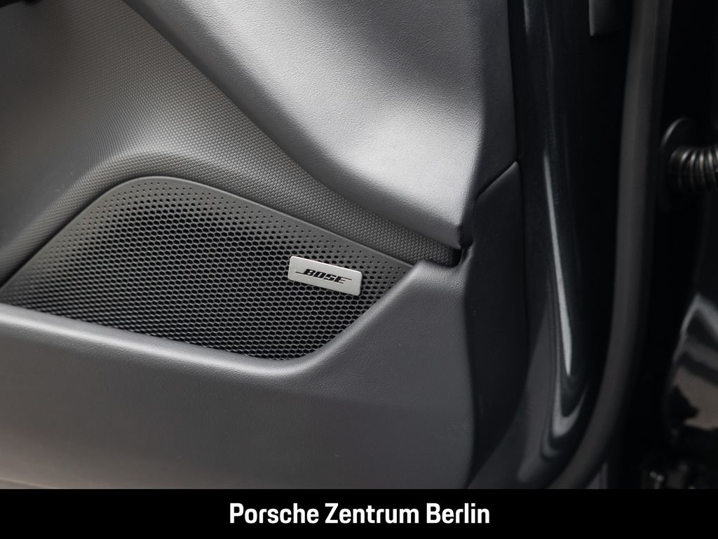 - Weiteres: (0NA) Entfall Modellbezeichnung, (NG1) Vorrüstung Fahrradheckträger, (6FJ) Außenspiegel Unterschalen lackiert in Exterieurfarbe inkl. Spiegelfuß lackiert in Schwarz (hochglanz), (J9Q) Performancebatterie Plus, (8LH) Sport Chrono Paket, (GM3) Porsche Electric Sport Sound, (1G8) Reifendichtmittel mit elektrischem Kompressor, (47I) 20-Zoll Taycan Turbo Aero Räder, (5KA) 4+1 Sitzanlage, (GT0) Akzent-Paket schwarz, (9VL) BOSE® Surround Sound-System, (3FG) Panoramadach, (VW1) Privacy-Verglasung, (FT3) Surround View inkl. Aktive Einparkunterstützung, (P4S) Porsche InnoDrive inkl. Aktive Spurführung, (7Y8) Spurwechselassistent