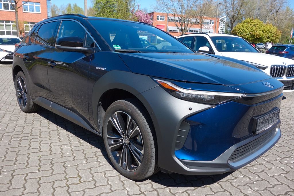 VOLLAUSSTATTUNG, Lederausstattung schwarz, Panorama-Glasdach, Fahrersitz elektrisch verstellbar mit Memory, JBL Soundsystem, 4 x Sitzheizung, 2 x Sitzbelüftung, Comfort-Paket, Technik-Paket, Airbag Beifahrerseite abschaltbar, Airbag Fahrer-/Beifahrerseite, Akustischer Fußgängerschutz (Außensound, AVAS), Anzeigeinstrumente digital, Audiobedienung am Lenkrad, Autom. Begleitfunktion der Beleuchtung (Follow me home, FMH), Außenspiegel elektr. anklappbar, Außenspiegel elektr. verstell- und heizbar, DAB-Tuner (Radioempfang digital), Dachantenne, Elektromotor 150 kW, Fahrassistenz-System: Berganfahrkontrolle (HAC), Fensterheber elektrisch vorn + hinten, Freisprechanlage Bluetooth, Freisprechanlage mit Audiostummschaltung und Sprachsteuerung, Gepäckraumboden 2-fach verstellbar, Getriebe für Elektrofahrzeug, Heckleuchten LED, HV-Batterie 71,4 kWh, Innenbeleuchtung LED, Innenspiegel mit Abblendautomatik, Isofix-Kindersitz-System, Karosserie: 5-türig, Klimaautomatik 2-Zonen, Knieairbag Fahrerseite, Kopf-Airbag-System, Kopfstützen vorn und hinten verstellbar, Lenksäule (Lenkrad) verstellbar, Parkbremse elektrisch (EPB), Radstand 2850 mm, Reifen-Reparaturkit, Reifendruck-Kontrollsystem, Rückfahrkamera, Rücksitz geteilt, Rücksitz klappbar, Seitenairbag hinten, Seitenairbag vorn, Sitz vorn rechts höhenverstellbar, Smartphone-Integration x-connect (Apple CarPlay und Android Auto), Sonnenblenden mit Spiegel (beleuchtet), Toyota Safety Sense, Warnanlage für Sicherheitsgurte hinten, Warnanlage für Sicherheitsgurte vorn, Wärmeschutzverglasung getönt, Innenspiegel automatisch abblendend, 8-Fach Bereift / Toyota Sommer- und Winterkompletträder, 1. Hand...Whatsapp +491772800454