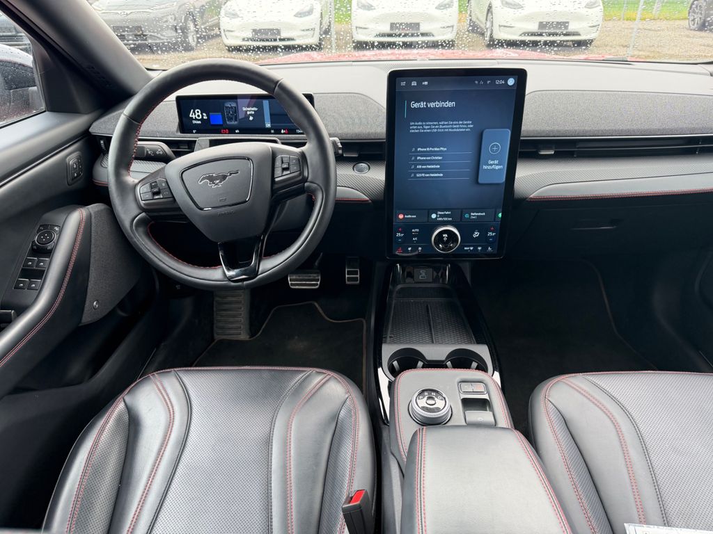Airbag Beifahrerseite abschaltbar, Akustischer Fußgängerschutz (Außensound, AVAS), Ambiente-Beleuchtung (Multicolor-LED), Anhänger-Stabilisierungs-Programm (TSA), Anhängerkupplung Vorbereitung, Audio-Navigationssystem Ford SD (mit Ford SYNC 4 und Touchscreen-Farbdisplay), Ausstattungs-Paket: Ford Co-Pilot 360, Außenspiegel elektr. anklappbar, Außenspiegel elektr. verstell- und heizbar, Außenspiegel schwarz, Dachhimmel Stoff, dunkel, Eco-Anzeige für verbrauchsoptimiertes Fahren (EcoCoach), Einstiegsleisten vorn (Edelstahl-Design), Elektr. Bremskraftverteilung (EBD), Elektromotor 258 kW (cont. 124 kW, Dual-Elektromotor), Fahrassistenz-System: Fernlichtassistent (Scheinwerfer mit Abblendautomatik), Fahrassistenz-System: Notbrems-Assistent, Fahrassistenz-System: Park-Assistent (Active Park Assist), Fahrassistenz-System: Post-Collision-System, Fensterheber elektrisch vorn + hinten mit Komfortschließung, FordPass Connect inkl. eCall, Fußmatten Velours, Heckleuchten LED, Heckspoiler, HV-Batterie 99 kWh brutto / 91 netto, Induktionsladeschale für mobile Endgeräte, Innenausstattung: Carbon-Dekor, Innenraumfilter: Staub- und Pollenfilter, Innenspiegel mit Abblendautomatik, Intelligent Protection System (IPS), Isofix-Aufnahmen für Kindersitz, Karosserie: 5-türig, Kindersicherung elektrisch, Klimaautomatik 2-Zonen, Kombiinstrument Digitalanzeige 10,2 Zoll, Komfortsitze vorn, Kopfstützen hinten mechan. verstellbar (3 Stück), Kopfstützen vorn 4-fach verstellbar, Ladekabel mit Typ 2-Stecker (Mode 3), Lenkrad heizbar, Leseleuchten im Fond, LM-Felgen, Matrix-LED-Scheinwerfer, Mittelarmlehne hinten, My Key (2. Fahrzeugschlüssel programmierbar), Parkbremse elektrisch mit Auto-Hold-Funktion, Parkpilotsystem vorn und hinten, Pedale Aluminium, Radstand 2984 mm, Reifen-Reparaturkit, Reifendruck-Kontrollsystem, Rücksitzlehne geteilt/klappbar (60:40), Sitzbezug / Polsterung: Kunstleder perforiert mit Ziernähte, Sitze vorn elektr. verstellbar (8-fach, mit Memory), Sitzheizung vorn, Sonnenblende links mit Spiegel (beleuchtet), Sonnenblende rechts mit Spiegel (beleuchtet), Spezialausführung, Steckdose (12V-Anschluß) im Koffer-/Laderaum, USB-Anschluss, Verglasung hinten abgedunkelt (Privacy Glass), WLAN-Hotspot