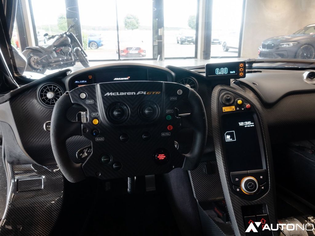 Without road-car regulations to hold it back, the P1™ GTR pushes everything to the limit. Available only to P1™ owners, production of the track-focused GTR began upon completion of the 375th and final road car. The mid-mounted powerplant has an output of 1,000PS (986bhp) and includes an ERS-style push-to-pass system. The large fixed rear wing features a Formula 1™-derived Drag Reduction System and the wing mirrors have been repositioned to the A pillars to put them closer to the eye line of the driver and reduce aerodynamic drag. The car sits at a fixed ride height on race-prepared suspension over 19-inch motorsport alloy wheels. Below the rear wing is the exposed, centrally mounted inconel and titanium alloy exhaust. This all new straight cut twin pipe design has been developed exclusively for the GTR. The steering wheel comes from the Formula one MP4-23.