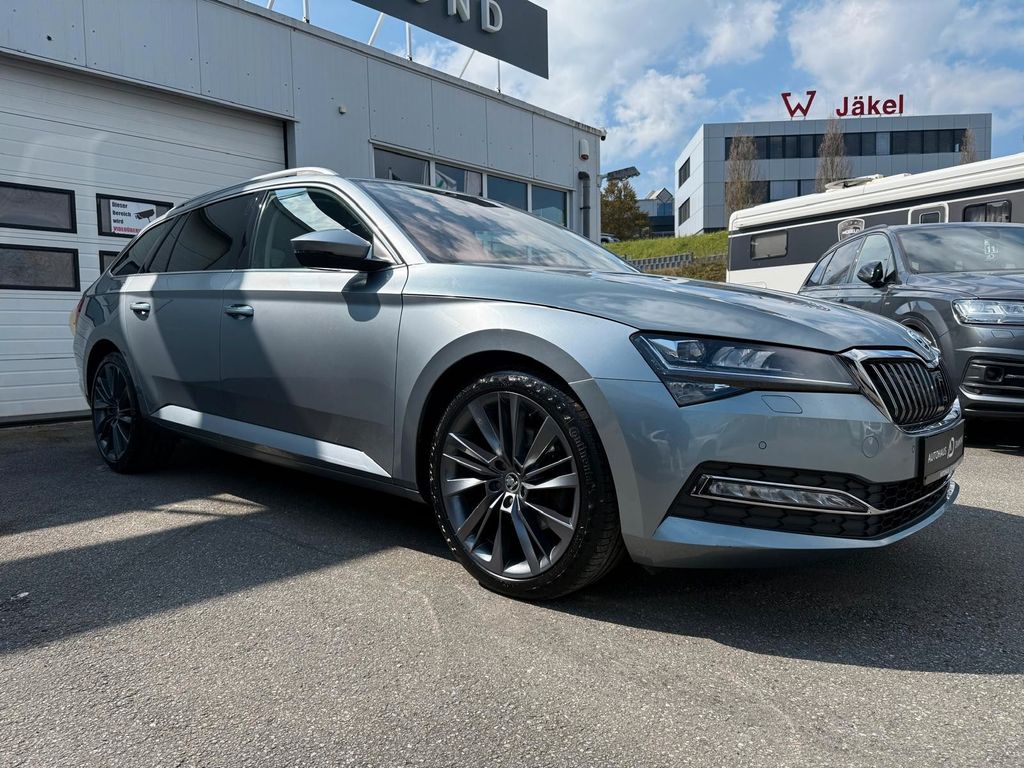 Dieser gepflegte Skoda Superb Kombi aus 2020 überzeugt durch seine umfangreiche Ausstattung und den zuverlässigen Allradantrieb. Der 190 PS starke Dieselmotor mit Euro 6 Einstufung bietet kraftvolle Leistung bei gleichzeitig wirtschaftlichem Verbrauch. Das Fahrzeug wurde in Deutschland ausgeliefert und hatte nur einen Vorbesitzer. Die elegante graue Metallic-Lackierung harmoniert perfekt mit dem hochwertigen beigen Lederinterieur.