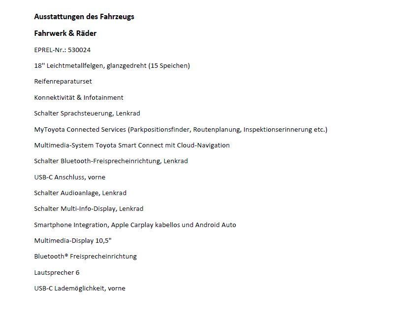 Aufgrund familiärer Veränderung bieten wir ein top gepflegten Auto Toyota Yaris Cross 5-Türer Style 1,5-I-VVT-iE Hybrid mit stufenlosen Automatikgetrieben an. Das Auto ist sehr sparsam und verfügt über vielen zusätzlichen Extras, siehe unten. Das Auto ist unfallfrei, hat jedoch ein bis zwei kleine Dellen, welche die Optik und die Fahrtüchtigkeit nicht beeinträchtigt.Erstzulassung: 21.03.2025