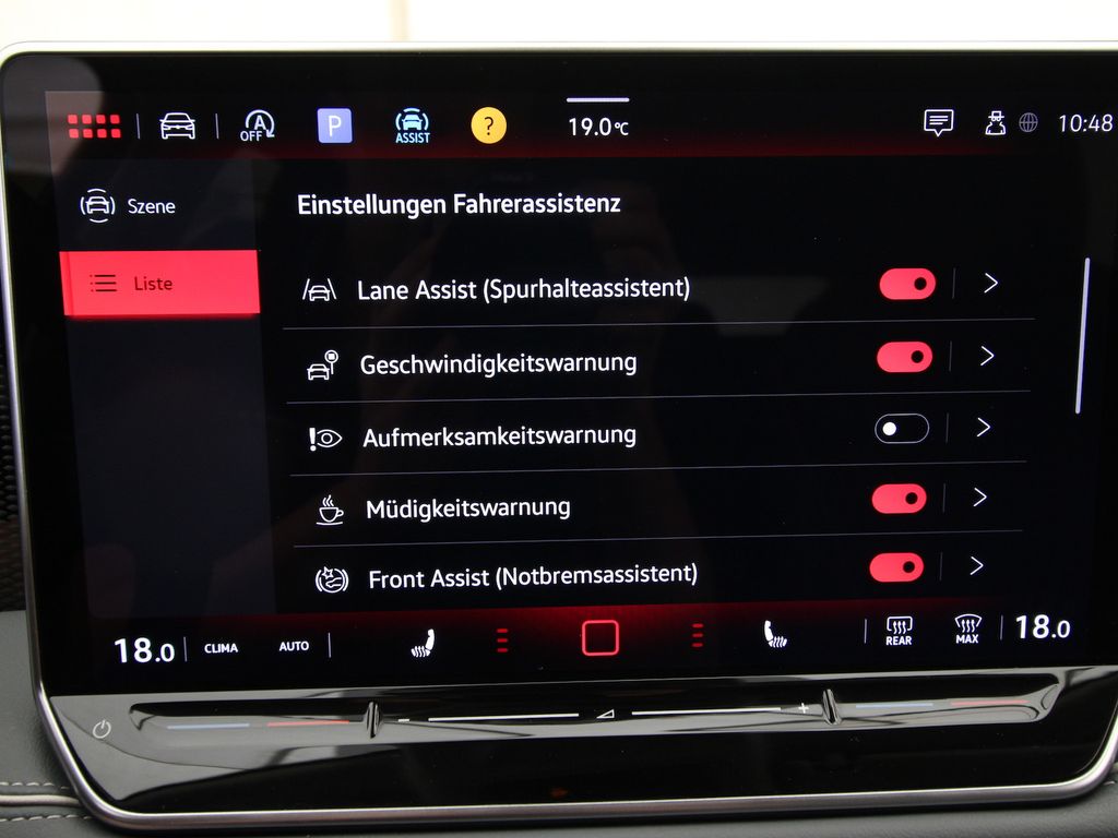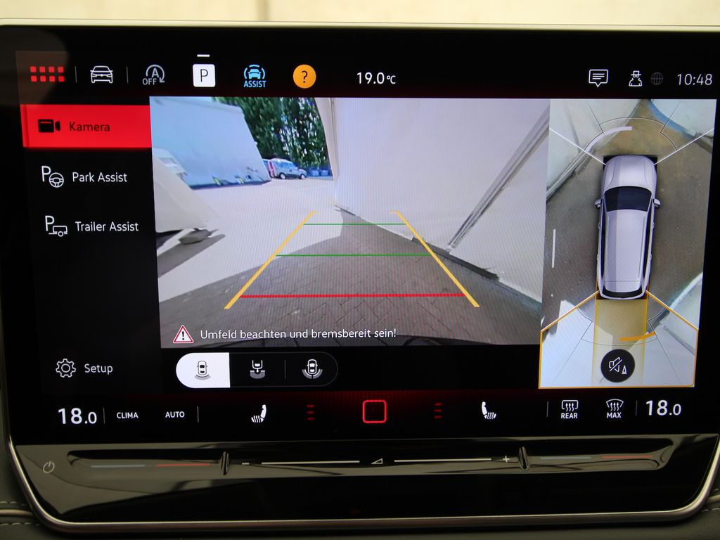Hybrid-Antriebssystem MHEV, Anhängevorrichtung mechanisch schwenkbar und elektrisch auslösbar mit Anhängerrangierassistent, Vordersitze mit Sitzflächen-Neigungs und Tiefeneinstellung, Ladekantenschutz in Edelstahl, Variables Ladebodenkonzept, Rücksitzlehne geteilt umlegbar mit Mittelarmlehne, Ausweichunterstützung mit Abbiegeassistent, Kindersicherung-elektrisch betätigt, Zierleisten blank, Sonnenblenden mit Make-up-Spiegel beleuchtet, Interaktionsairbag vorn, Ausstiegswarner, Mit erweitertem Sicherheitssystem (PreCrash), Parklenkassistent IPA (Intelligent Park Assist), LED-Hauptscheinwerfer mit Fernlichtassistent, Lendenwirbelstütze pneumatisch einstellbar beidseitig, Front Assist mit Warnen und Bremsen auf Fahrzeuge und Fußgänger und Radfahrer, Automatische Distanzregelung, Assistenzfahrlicht, Coming-Home-Funktion, Leaving-Home-Funktion, Wired & Wireless App-Connect, Ablenkungs- und Müdigkeitserkennung, Kreuzungsassistent, Front und Rückfahrkamerasystem und zwei Seitenkameras - Umgebungsansicht Area View, 3 Zonen CLIMATRONIC mit Klimabedienteil hinten, Sitzbezüge in Alcantara/Leder, Assistenzpaket IQ.DRIVE, Sprachsteuerung plus ICC, Multifunktionskamera, Ambiente-Beleuchtung außen, Fußgängerschutzmaßnahmen erweitert und vorausschauend, Trailer-Assist, Digital Cockpit PRO, Park Assist Plus, Akustik-Paket, Geräuschmaßnahme Akustik verbessert, Innengeräuschdämpfung erweitert, Travel Assist, Emergency Assist