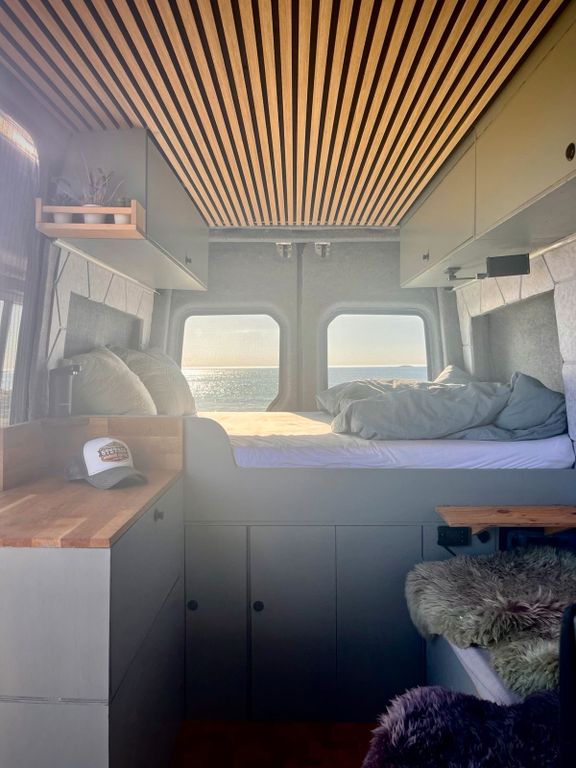 Ich habe den Crafter in Eigenleistung einmal komplett neu ausgebaut. Das Auto ist mit Alubityl einmal komplett gegen Vibrationen gedämmt. Darauf 19mm Armalex (inkl. Fußboden). Seitenwände mit 6mm Sperrholzplatten verkleidet und darauf Akustikdämmplatten in Hexagon Optik. Offene Metallflächen sind grau gefilzt.