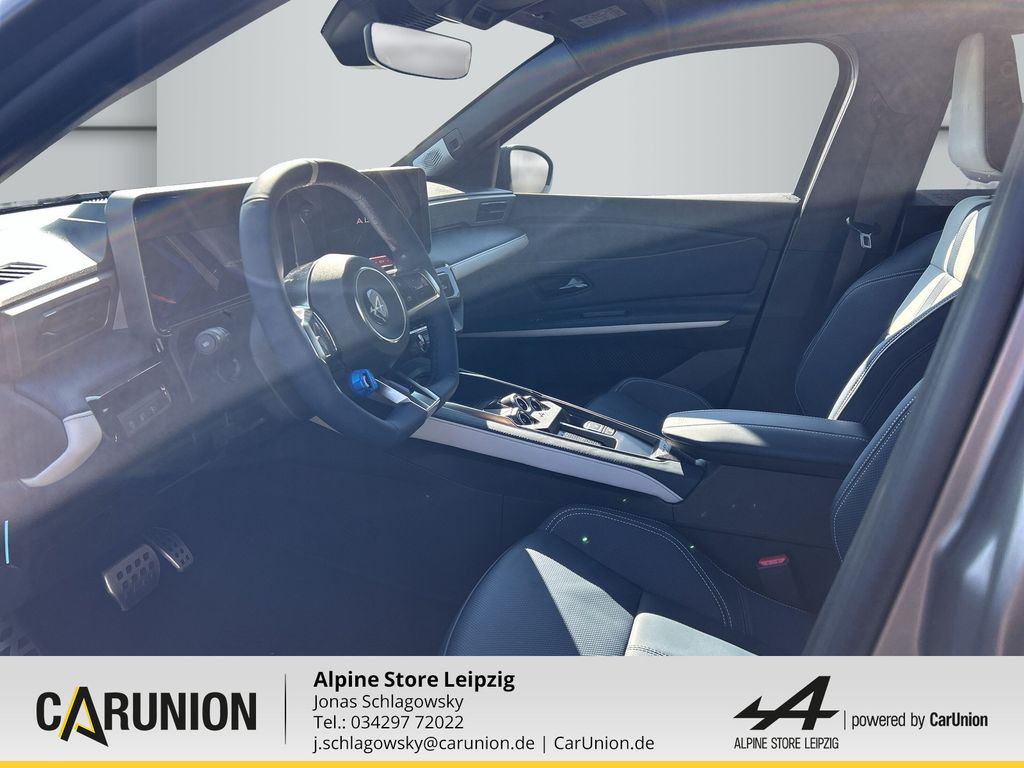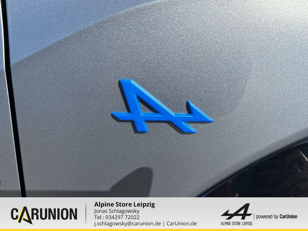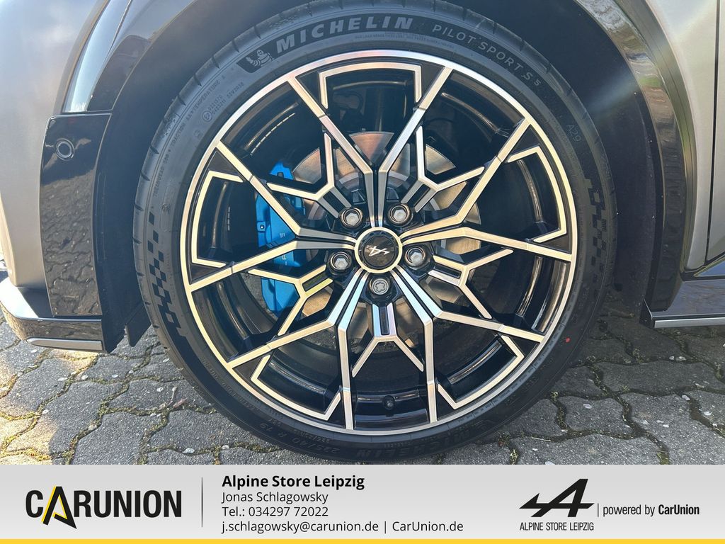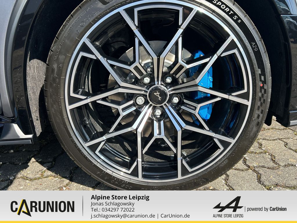 Alpine Monogramm, blau, SNOWFLAKE Alu-Räder 19 Zoll, Diamant-Schliff, Entfall Modellname Heckklappe, Batterie, Bremssättel vorne in Alpine-Blau, Driving Paket, Safety-Paket, Modellname Heckklappe, Voll-LED-Scheinwerfer LED Pure Vision, Fernlichtassistent, Sport-Nappa-Lederlenkrad abgeflacht, Beheizbares Lenkrad, Stark getönte Heck- und Seitenscheiben hinten, Vordersitze beheizbar, Interieur Nappaleder in Deep Blue/Evee Grey mit Alpine-Nähte, Nappaleder in Deep Blue/Evee Grey mit Alpine-Nähten und Mono, Fahrer und Beifahrersitz höhenverstellbar Vordersitze beids, Elektronische Bremskraftverteilung, 2 USB-C Anschlüsse vorne, ISOFIX-i-Size-Kindersitzbefestigung, Mittelkonsole mit Staufach und Mittelarmlehne, Induktive Smartphoneladefläche, Sicherheitsabstand-Warner, LED-Tagfahrlicht, Elektronisches Stabilitätsprogramm (ESP) mit Berganfahrhilfe, SNOWFLAKE Alu-Räder 19 Zoll Schwarz glänzend, Reifenreparaturset, eCall-Notrufsystem, Rückfahrkamera, Reifendruck kontrolle direkt, MULTI-SENSE mit Ambientebeleuchtung zur individuellen Einste, Ohne Livery, Ambientebeleuchtung vorne, Einparkhilfe vorne hinten und seitlich, Klimaautomatik, Alpine Emblem vordere Kotflügel, Licht- und Regensensor, Länderkennzeichen Deutschland, Wärmepumpe, Spurhalteassistent, AC 11kW On-board Charger, Haifischantenne, Ladekabel Mode 3, Dachlinie Blau Matt eloxiert, Alpine Sportfahrwerk, Alpine Telemetrics Expert, Bremssättel vorne in Racing-Rot, Kabellose Smartphone-Integration via Android Auto(TM) und Ap, Keycard Handsfree, Alpine Portal 101" mit Google built-in und Devialet Premi, Reifen: Michelin Pilot Sport 5S, Alpine Monogramm schwarz, Alpine-Logo Lenkradnabe Schwarz, Ohne blauen Radnabendeckel, Ohne Dachbeklebung, Adaptiver Tempopilot