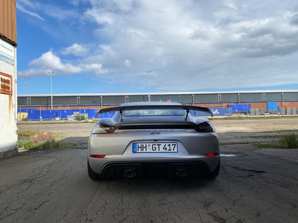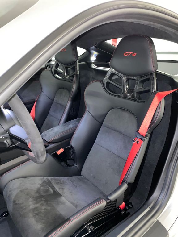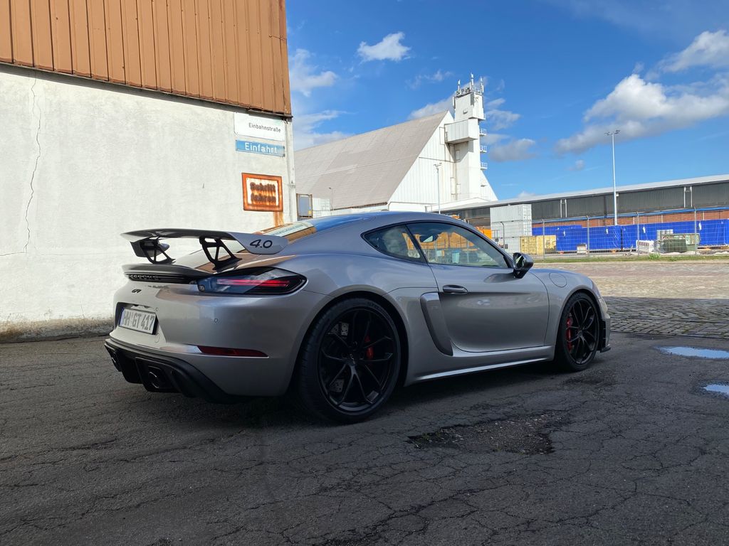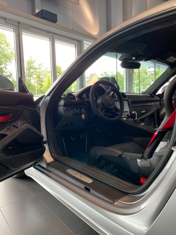 Ich verkaufe hier meinen Porsche Cayman GT4 - Erstzulassung Juli 2020. Der GT4 ist erster Hand und befindet sich seit Juli 2020 in meinem Besitz.Das Fahrzeug ist GT-Silber metallic mit der Lederausstattung in Schwarz mit erweiterten Alcantara Umfängen und den Ziernähten in Rot. Die Felgen sind Schwarz (seidenglanz) und die Bremssättel rot. Das Highlight sind definitiv die Carbon Vollschalensitze in Kombination mit dem Schaltgetriebe und dem Motor.
