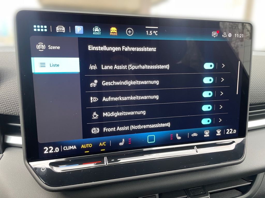 Abbiege- und Allwetterlicht / Schlechtwetter-Licht, Airbag Fahrer-/Beifahrerseite, Beifahrerairbag abschaltbar, Ambiente-Beleuchtung (30 Farben, Armaturenbrett und Türverkleidung, Dekoreinlagen durchleuchtet), App-Connect Wireless (Apple CarPlay, Android Auto), Audiosystem: Vorbereitung für spätere Freischaltung Navigationsfunktion, Automatische Fahrlichtschaltung mit Leaving Home / Coming-Home-Lichtfunktion, Tagfahrlicht LED, Außenspiegel elektr. verstell-, heiz- und anklappbar mit Spiegelabsenkung rechts, Außenspiegel mit Umfeldleuchte und Projektionsfunktion, Bordwerkzeug, Chromeinfassung Fensterheberschalter / Spiegelverstellung / Ausströmer, Dachhimmel Stoff, schwarz, Diebstahl-Warnanlage (Innenraumüberwachung, Back-up-Horn, Abschleppschutz), Digital Cockpit PRO (Instrumentenanzeige digital), Einstiegsleisten (Aluminium), Elektron. Stabilitäts-Programm (ESP) mit Bremskraftverstärker elektro-mechanisch, Fahrassistenz-System: Abbiegebremsfunktion und Ausweichunterstützung, Fahrassistenz-System: Ablenkungs- und Müdigkeitserkennung, Fahrassistenz-System: Berganfahr-Assistent, Fahrassistenz-System: Fahrerlebnisschalter, Fahrassistenz-System: Fahrprofilauswahl, Fahrassistenz-System: Kreuzungs-Assistent, Fahrassistenz-System: Notbremsassistent Front assist mit Fußgänger- und Fahrraderkennung, Fahrassistenz-System: Parklenkassistent (Park Assist Plus) inkl. Einparkhilfe vorn und hinten, Fahrassistenz-System: Spurhalteassistent (Lane Assist), Fahrassistenz-System: Spurwechselassistent (Side Assist) mit Auspark-Assistent und Ausstiegswarnung, Fahrassistenz-System: Verkehrszeichenerkennung, Frontscheibe Verbundglas, wärmedämmend, Fußmatten Textil, Fußraumbeleuchtung vorn, Gepäckraumboden höhenverstellbar, Geschwindigkeitsbegrenzer mit vorausschauender Geschw.-Regelung, Infotainment-System mit Touchscreen-Farbdisplay 12,9 Zoll, Innenspiegel mit Abblendautomatik, Isofix-Aufnahmen für Kindersitz an Beifahrersitz und Rücksitze außen (inkl. i-Size-Kindersitze), Karosserie: 5-türig, Klimaanlage Air Care Climatronic 3-Zonen inkl. Fondbedienung und Aktiv-Kombi-Filter, Kopfstützen hinten (3-fach), Lautsprecher (6), Lendenwirbelstützen vorn, pneumatisch verstellbar, Lenkrad heizbar (Sport/Leder) mit Multifunktion und Schaltfunktion, Leuchtweitenregelung automatisch und Dynamisches Kurvenlicht, Mild-Hybrid 110 kW (Motor 1,5 Ltr. - 110 kW eTSI), Mobile Online Dienste Vorbereitung We Connect / We Connect Plus / VW Connect / VW Connect Plus, Mobiltelefon Schnittstelle Comfort mit kabelloser Ladefunktion, Multimedia-Schnittstelle 2 x USB (Typ C) vorn und 2 x USB-Ladeanschluß (Typ C) Mittelkonsole hinten (60 W), Nichtraucher-Paket, Notrufsystem, Otto-Partikelfilter (OPF), Parkbremse elektrisch mit Auto-Hold-Funktion, Pedale Edelstahl, Progressivlenkung, Radioempfang digital (DAB+), Radstand Standard, Reifen-Reparaturkit (Tire Mobility Set), Reifenkontroll-Anzeige, Rückfahrkamera (Rear View), Rücksitzlehne geteilt mit Mittelarmlehne, Schadstoffarm nach Abgasnorm Euro 6e, Schließ-/Startsystem Keyless Access mit Safesicherung, Seitenairbag vorn mit Center-Airbag, Kopf-Airbag-Einheit vorn und hinten, Seitenscheiben hinten und Heckscheibe abgedunkelt, Sicherheitsgurte hinten außen mit Gurtstraffer, Sitzbezug / Polsterung: Stoff R-Line, Sitze vorn höhenverstellbar, Sitze: Sport-Komfortsitze vorn, Sitzheizung vorn, Sonnenblenden mit Spiegel (beleuchtet), Sport-Fahrwerk, Start/Stop-Anlage mit Rekuperation, Stoßfänger R-Line, Verbandkasten, Warndreieck und Warnweste(n), VW Logo vorn / hinten, Leiste zwischen Scheinwerfer / Rückleuchten beleuchtet, Warnanlage für Sicherheitsgurte vorn und hinten