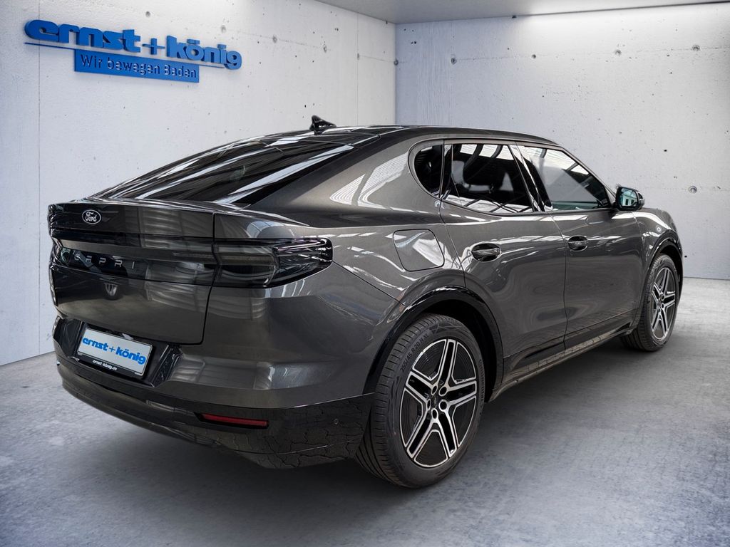 Entdecken Sie den Ford Capri, ein beeindruckendes Elektro-SUV mit Heckantrieb und einer Reichweite von 598 km. Dieses Fahrzeug aus dem Jahr 2025 mit nur einem Vorbesitzer präsentiert sich in elegantem Grau-Metallic und bietet 286 PS Leistung. Der Innenraum in Schwarz mit Teillederausstattung vereint Komfort und Funktionalität. Die 8-jährige Batteriegarantie bis 160.000 km und ein hervorragender Batteriezustand von 99% geben Ihnen Sicherheit für die Zukunft. Das Fahrzeug verfügt über ein umfassendes Sicherheitspaket mit Front-, Seiten- und weiteren Airbags sowie modernsten Fahrassistenzsystemen wie Spurhalteassistent, Totwinkelwarner und adaptivem Tempomat. Die Ausstattung umfasst eine 2-Zonen-Klimaautomatik, elektrische Heckklappe und ein digitales Cockpit mit Navigationssystem.- Elektro-SUV mit 598 km Reichweite und 286 PS