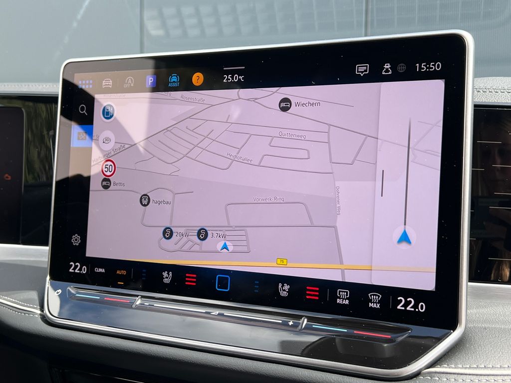 Anhängevorrichtung anklappbar, mit elektrischer Entriegelung; inkl. Anhängerrangierassistent Trailer Assist; Automatische Distanzregelung ACC "stop & go"; Mit Verkehrszeichenerkennung; Fernlichtassistent "Light Assist"; Umgebungsansicht "Area View" inkl. Rückfahrkamera "Rear View"; Fahrassistent "Travel Assist", Spurhalteassistent "Lane Assist" und "Emergency Assist"; Spurwechselassistent "Side Assist", Ausparkassistent und Ausstiegswarnung; Ablenkungs- und Müdigkeitserkennung; Geschwindigkeitsbegrenzer mit vorausschauender Regelung; Parkassistent "Park Assist Plus" inkl. Einparkhilfe; Regensensor; Kreuzungsassistent