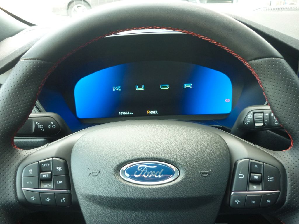 Adaptive Geschwindigkeits-Regelanlage mit Stop&Go-Funktion, Akustischer Fußgängerschutz (Außensound, AVAS), Ambiente-Beleuchtung vorn (LED), Antischlupfregelung (ASR), Audio-Navigationssystem Ford mit AppLink, Außenspiegel elektr. anklappbar, Außenspiegel elektr. verstell- und heizbar, Body-Styling-Paket, Bordcomputer, Bremssättel Rot lackiert, Dachhimmel Stoff, dunkel, Dachreling schwarz, Dachspoiler (große Ausführung) Wagenfarbe, Doppelendrohr Auspuffanlage, Eco-Anzeige für verbrauchsoptimiertes Fahren (EcoCoach), Einstiegschienen mit Modell-Schriftzug, Elektromotor 97 kW (Hybridantrieb), Ergonomiesitze vorn, Fahrassistenz-System: aktiver Park-Assistent Plus, Ein- und Auspark-Funktion und teilautomatisierter Fahrzeugführung, Fahrassistenz-System: Ausweich-Assistent (Evasive Steer Assistance, ESA), Fahrassistenz-System: Fahrspur-Pilot, Fahrassistenz-System: Falschfahrer-Warnfunktion, Fahrassistenz-System: Notbrems-Assistent, Fahrassistenz-System: Post-Collision-System, Fahrassistenz-System: Pre-Collision-System mit Querverkehrs-Assistent (Kamera- und Radar-basiert), Fahrassistenz-System: Spurhalteassistent, Fahrassistenz-System: Totwinkel-Assistent, Cross Traffic Alert und Notbremsfunktion, Fahrassistenz-System: Verkehrsschildassistent, Fensterheber elektrisch vorn + hinten mit Komfortschließung, FordPass Connect inkl. eCall, Fußmatten ST-Design, Gepäckraumabdeckung / Rollo, Getriebe Automatik stufenlos - ECVT, Heckleuchten LED, Hybrid 178 kW (Motor 2,5 Ltr. - 112 kW), Induktionsladeschale für mobile Endgeräte, Innenspiegel mit Abblendautomatik, Intelligent Protection System (IPS), Intelligenter Geschwindigkeits-Begrenzer, Isofix-Aufnahmen für Kindersitz, Karosserie: 5-türig, Kindersicherung elektrisch, Klimaautomatik 2-Zonen, Kofferraumdeckel / Heckklappe elektr. betätigt (Öffnung, sensorgesteuert), Kombiinstrument Digitalanzeige 12,3 Zoll, Kopfstützen vorn 4-fach verstellbar, Ladekabel mit Schukostecker, Lendenwirbelstütze Sitz vorn links, Lendenwirbelstütze Sitz vorn rechts, Lenkrad (Sport/Leder, ST), Lenksäule (Lenkrad) höhen-/längsverstellbar, LM-Felgen, Mittelarmlehne hinten, Modellpflege, My Key (2. Fahrzeugschlüssel programmierbar), Off-Road Multi-Meter-Anzeigen inkl. Neigungswinkel, Kompass, Parkbremse elektrisch mit Auto-Hold-Funktion, Parkpilotsystem vorn und hinten, Pedale Aluminium, Radstand 2710 mm, Reifendruck-Kontrollsystem, Rückfahrkamera, Rücksitzlehne geteilt, Rücksitzlehne klappbar, Schadstoffarm nach Abgasnorm Euro 6e, Schalt-/Wählhebelgriff Aluminium, Scheibenrahmen schwarz, Scheinwerfer mit Ausschaltverzögerung, Scheinwerfer-Assistent mit Tag-/Nachtsensor, Seitenscheiben vorn Akustikglas, Sitzbezug / Polsterung: Kunstleder / Stoff Wildleder Optik, Sitzheizung vorn, Sonnenblende links mit Spiegel (beleuchtet), Sonnenblende rechts mit Spiegel (beleuchtet), Spezialausführung 2, Sport-Fahrwerk, Türkantenschutz / Schutzprofil vorn und hinten (Door Edge Protector), Verglasung hinten abgedunkelt (Privacy Glass)