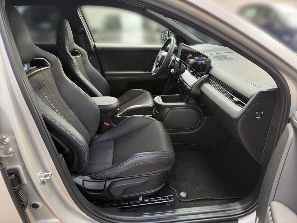 Dieser gebrauchte Hyundai IONIQ 5 in mattem Gold vereint Offroad-Charakter mit modernster Elektrotechnologie. Das Fahrzeug aus deutscher Auslieferung wurde erstmals 2025 zugelassen und hatte nur einen Vorbesitzer. Mit seiner 84 kWh Batterie erreicht der Allradantrieb eine Reichweite von 448 km. Die Schnellladefunktion ermöglicht das Aufladen in nur 18 Minuten. Mit beeindruckenden 609 PS bietet dieser SUV sowohl Leistung als auch Komfort. Die V2L-Funktion erlaubt bidirektionales Laden, während die Wärmepumpe für effiziente Klimatisierung sorgt.Der Innenraum in Schwarz mit Teillederausstattung überzeugt durch digitales Cockpit, Head-up-Display und beheizbare Sitze vorne und hinten. Die umfangreichen Assistenzsysteme wie 360°-Kamera, Spurhalteassistent und Verkehrszeichenerkennung sorgen für maximale Sicherheit. Das Fahrzeug verfügt über Hyundai Promise Gebrauchtwagensiegel und volle Garantie.