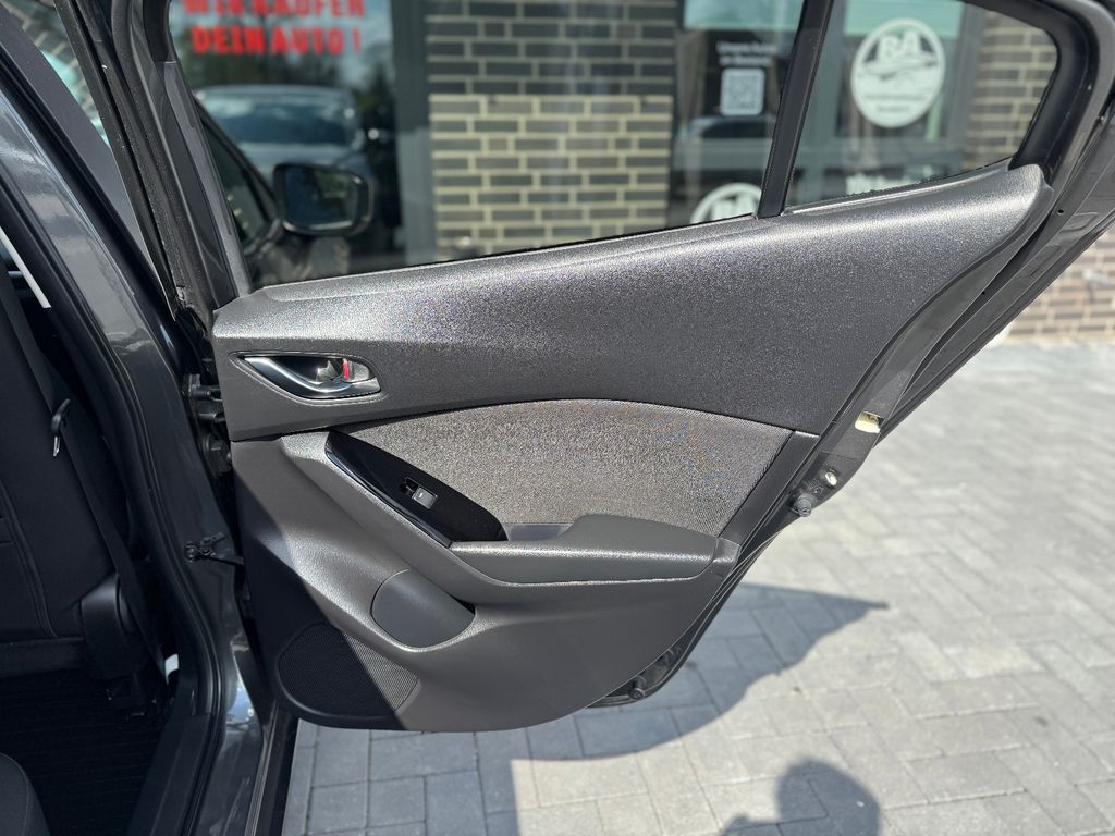 Dieser gepflegte Mazda 3 Kombi aus dem Jahr 2017 überzeugt durch seine umfangreiche Ausstattung und den sehr guten Zustand. Der Wagen wurde in Deutschland zugelassen und hatte nur einen Vorbesitzer. Mit seinem 120 PS starken 2,0-Liter-Benzinmotor (Euro 6) und Automatikgetriebe bietet er ein angenehmes Fahrerlebnis. Die graue Metallic-Lackierung harmoniert perfekt mit dem schwarzen Stoffinterieur. Besonders hervorzuheben sind die 3-Zonen-Klimaautomatik, das Navigationssystem mit Touchscreen und das Head-up-Display. Für zusätzliche Sicherheit sorgen LED-Scheinwerfer, LED-Tagfahrlicht, Spurhalteassistent und Kollisionsvermeidungssystem. Der Mazda verfügt über eine lückenlose Servicehistorie und wurde stets als Nichtraucherfahrzeug genutzt.Sonderausstattung: