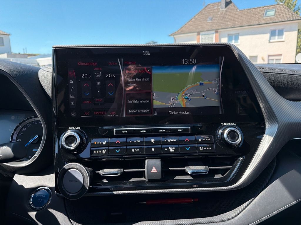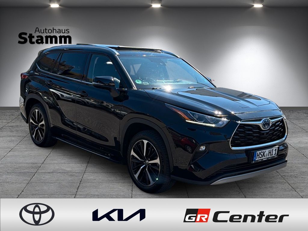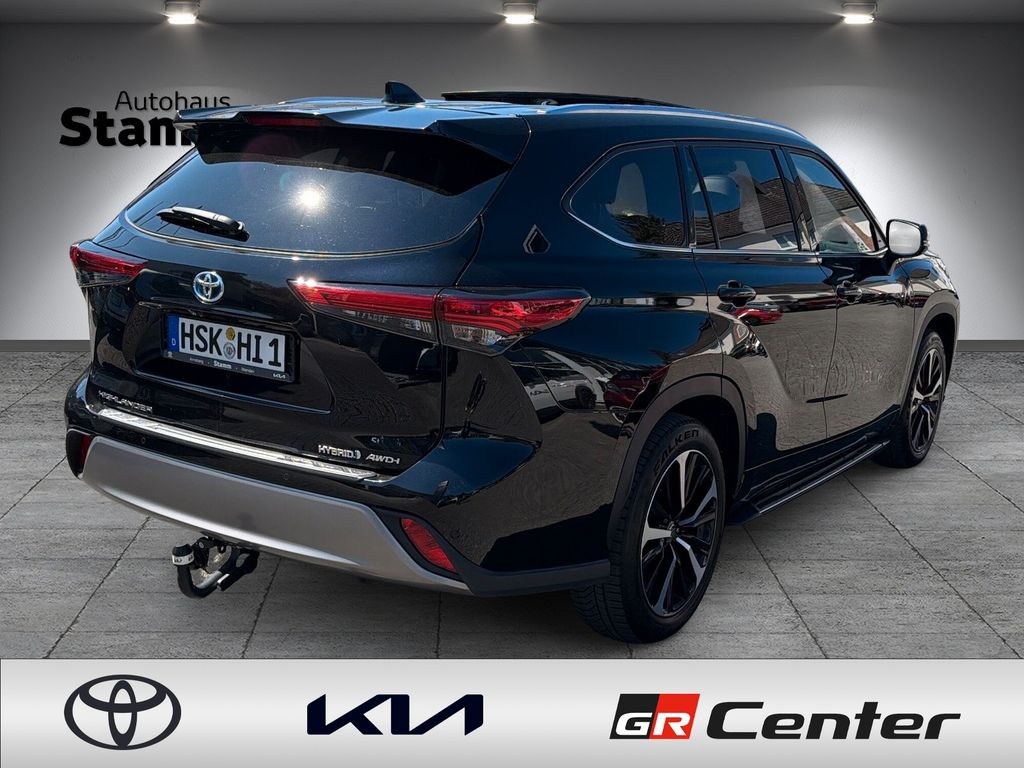 2.Sitzreihe mit Einzelsitzen, 2.Sitzreihe mit Sitzbank geteilt/klappbar, 3. Bremsleuchte, 3.Sitzreihe mit Sitzbank, 3.Sitzreihe mit Sitzbank geteilt/klappbar, A-Säulen schwarz glänzend (außen), Ablagetasche an Vordersitzlehnen, Adaptive Geschwindigkeits-Regelanlage mit Stop&Go-Funktion, Airbag Fahrer-/Beifahrerseite, Aktive Kopfstützen vorn, Ambiente-Beleuchtung vorn (LED), Anhänger-Stabilisierungs-Programm (TSC), Audiobedienung am Lenkrad, Audiosystem: Multimedia Toyota Touch, Außenspiegel elektr. anklappbar, Außenspiegel elektr. verstell- und heizbar, Außenspiegel mit Einparkfunktion/Rückwärtsparkhilfe, Blinkleuchte in Außenspiegel integriert, Bodenleuchte im Außenspiegel, Bremsassistent, Dachreling (verchromt), Dachspoiler, Einparkhilfe vorn und hinten, Einstiegsleisten (Aluminium), Elektromotor VA 134 kW / HA 40 kW (Hybridantrieb), Fahrassistenz-System: Berganfahrkontrolle (HAC), Fahrassistenz-System: Querverkehrs-Assistent Heck (Rear Cross Traffic Alert, RCTA), Fahrassistenz-System: Sicherheitssystem Toyota Connect mit automatischem Notruf (eCall), Fahrassistenz-System: Totwinkel-Assistent (BLIS), Fensterheber elektrisch vorn + hinten, Freisprechanlage Bluetooth, Frontscheibe Akustikglas, Gepäckraumabdeckung / Rollo, Head-up-Display, Heckleuchten LED, Induktionsladeschale für Smartphone, Innenausstattung: Carbon-Dekor, Innenausstattung: Holzdekor-Set, Innenbeleuchtung LED, Innenraumfilter: Staub- und Pollenfilter mit Aktivkohlefilter, Innenspiegel, digital (Smart View Mirror), Isofix-Kindersitz-System, Kamerasystem 360 Grad, Karosserie: 5-türig, Klimaautomatik 3-Zonen, Knieairbag Fahrerseite, Kofferraumdeckel / Heckklappe elektr. betätigt sensorgesteuert, Kopf-Airbag-System, Kopfstützen hinten, Kühlergrill mit Chromrand, Kühlergrill schwarz lackiert, Ladekantenschutz (Edelstahl), Lenkrad heizbar, Lenksäule (Lenkrad) verstellbar, Leseleuchten im Fond, Licht-aus-Automatik (Auto Cut), LM-Felgen, Mittelarmlehne vorn, Mittelkonsole mit Ablagefach, Motor 2,5 Ltr. - 140 kW 16V Hybrid, Multi-Funktions-Display für Navigationssystem (12,3 Zoll), Navigationssystem (Touch & Go), Nebelscheinwerfer LED, Radstand 2850 mm, Reifendruck-Kontrollsystem, Reserverad als Notrad, Schadstoffarm nach Abgasnorm Euro 6d, Schalt-/Wählhebelgriff Leder, Scheibenwaschdüsen heizbar, Seitenairbag, Seitenscheiben vorn Akustikglas, Sitz vorn links elektr. verstellbar (6-fach), Sitz vorn rechts elektr. verstellbar (4-fach), Sitzbezug / Polsterung: Leder, Sitze vorn klimatisiert, Smartphone-Integration x-connect (Apple CarPlay und Android Auto), Sonnenblenden mit Spiegel (beleuchtet), Sonnenschutzrollo an Seitenscheiben hinten, Sound-System JBL Premium (inkl. Subwoofer), Start-Stop-Knopf, Steckdose (12V-Anschluß) in Mittelkonsole, Toyota Safety Sense, Türgriffe außen Wagenfarbe, Universal-Schnittstelle (USB-/ iPod-/ AUX-Anschluss), Verglasung hinten abgedunkelt, Wärmeschutzverglasung