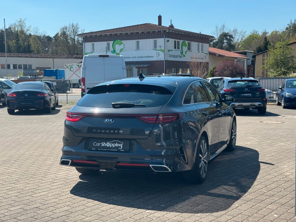Dieser gepflegte KIAProCeed aus dem Jahr 2019 präsentiert sich in elegantem Grau-Metallic mit schwarzem Alcantara-Interieur. Der Benziner mit 140 PS und Frontantrieb bietet dank Automatikgetriebe ein komfortables Fahrerlebnis. Die umfangreiche Ausstattung umfasst ein Navigationssystem mit Touchscreen, Apple CarPlay, DAB-Radio und Bluetooth-Freisprecheinrichtung. Für zusätzlichen Komfort sorgen die Klimaautomatik, beheizbare Sitze, beheizbares Lenkrad und das Panorama-Schiebedach. Das Sportpaket mit Sportsitzen verleiht dem Fahrzeug eine dynamische Note. Sicherheit wird durch zahlreiche Assistenzsysteme wie Spurhalteassistent, Totwinkelwarner, Verkehrszeichenerkennung und Kollisionsvermeidung gewährleistet. Der Wagen verfügt über eine lückenlose Servicehistorie und eine gültige Garantie.