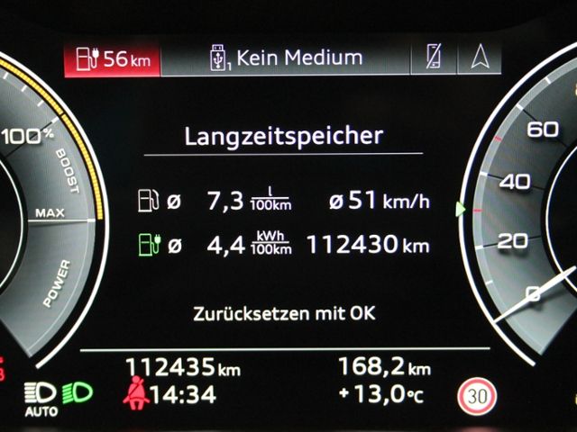 Scheiben seitlich und hinten in Wärmeschutzverglasung; Nichtraucherausführung; Getränkehalter hinten; Brillantschwarz; Karosserie: 4-türig; Sicherheitslenksäule; Quattro; Prädiktiver Effizienz-Assistent; Dekoreinlagen Aluminium matt gebürstet dunkel; Bedientasten schwarz matt