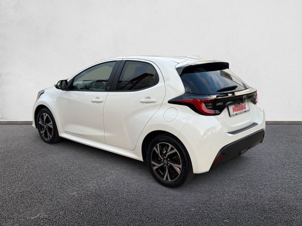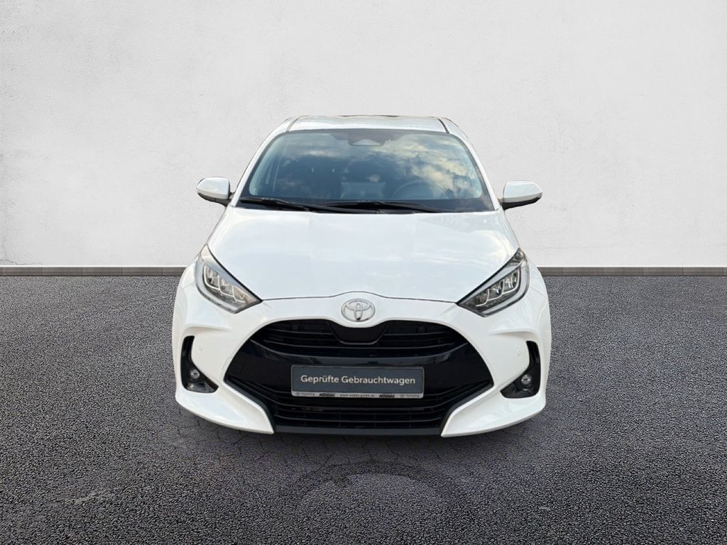 3. Bremsleuchte, Airbag Beifahrerseite abschaltbar, Airbag Fahrer-/Beifahrerseite, Aktive Kopfstützen vorn, Anzeigeinstrumente digital, Audiobedienung am Lenkrad, Audiosystem TAS600 (Toyota Smart Connect), Autom. Begleitfunktion der Beleuchtung (Follow me home, FMH), Außenspiegel elektr. verstell- und heizbar, Blinkleuchte in Außenspiegel integriert, Comfort-Paket, Dachantenne, Elektr. Bremskraftverteilung, Fahrassistenz-System: Berganfahrkontrolle (HAC), Fahrassistenz-System: Eco-Anzeige für verbrauchsoptimiertes Fahren, Fahrassistenz-System: Müdigkeitserkennungs-Sensor, Fahrassistenz-System: Notlenk-Assistent, Fahrassistenz-System: Sicherheitssystem Toyota Connect mit automatischem Notruf (eCall), Fensterheber elektrisch vorn + hinten, Freisprechanlage Bluetooth, Freisprechanlage mit Audiostummschaltung und Sprachsteuerung, Gepäckraumabdeckung / Rollo, Heckleuchten LED, Heckspoiler schwarz, Innenraumfilter: Staub- und Pollenfilter mit Aktivkohlefilter, Isofix-Kindersitz-System, Karosserie: 5-türig, Klimaautomatik, Kopfstützen vorn und hinten verstellbar, Kühlergrill unten / oben Pianolack, Lenksäule (Lenkrad) verstellbar, Leseleuchte, LM-Felgen, Motor 1,5 Ltr. - 68 kW (System: 85 kW) Hybrid, Multimedia Display (9,0 Zoll), Nebelscheinwerfer LED, Parkbremse elektrisch (EPB), Protection-Paket, Reifen-Reparaturkit, Reifendruck-Kontrollsystem, Rückfahrkamera, Rücksitz geteilt, Rücksitz klappbar, Schadstoffarm nach Abgasnorm Euro 6d, Schalt-/Wählhebelgriff Leder, Scheibenwischer mit Intervallschaltung, Seitenairbag hinten, Seitenairbag vorn, Service-System: MyT-Connected Services, Sitz vorn links höhenverstellbar, Toyota Safety Sense, USB-Schnittstelle, Verglasung hinten abgedunkelt, Warnanlage für Sicherheitsgurte hinten, Warnanlage für Sicherheitsgurte vorn