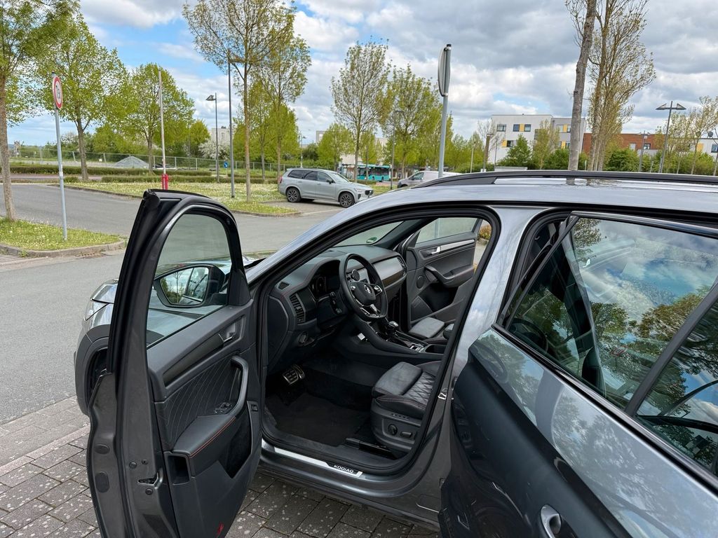 erkaufe einen Skoda Kodiaq RS 2.0 TSI 180 kW 7-Gang DSG 4x4 in Graphite-Grau Metallic. Das Fahrzeug ist als Familienauto genutzt worden und nun aus dem Leasing ausgelaufen. Entsprechend pfleglich behandelt, Checkheft gepflegt, alle kilometerbedingten Verschleißteile beim VW Händler getauscht worden. Komplette Historie vom VW Händler/Werkstatt in Frankfurt liegt bei.Fahrzeug hat eine CarGarantie über 12 Monate (ab 22.03.2026) - 3ss Gebrauchtwagen