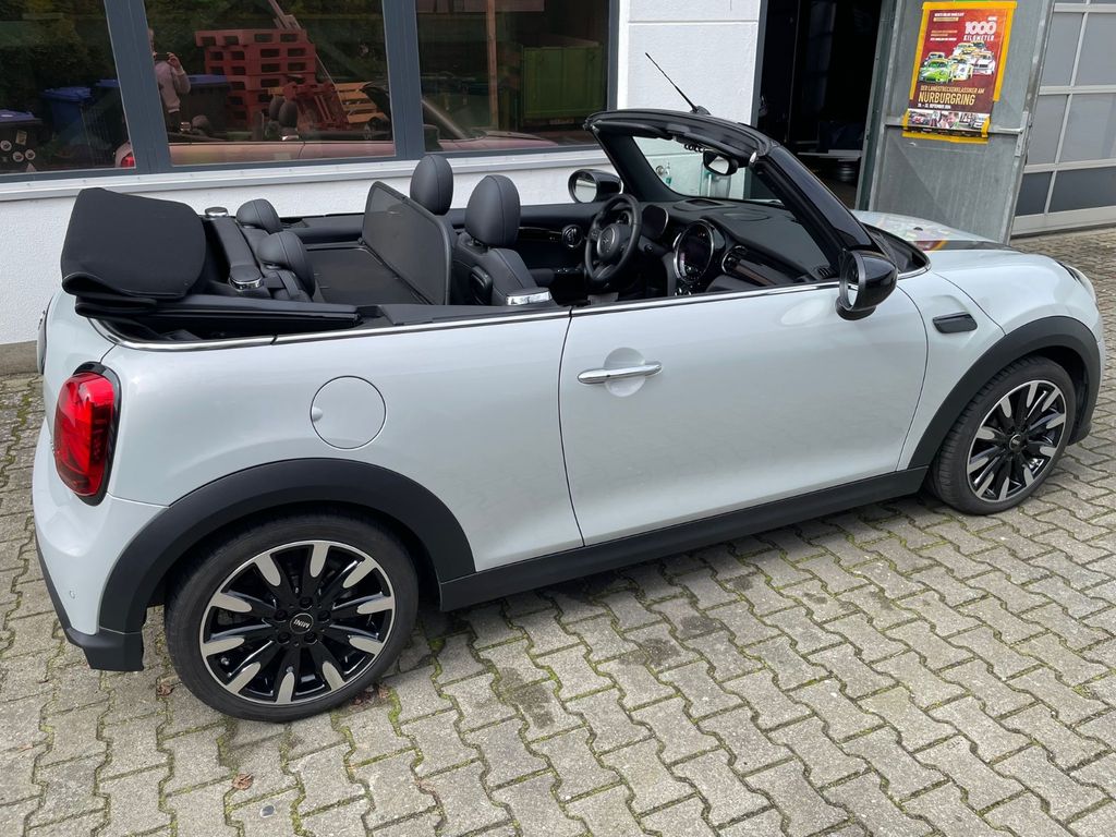 3. Bremsleuchte, Airbag Beifahrerseite abschaltbar, Airbag Fahrer-/Beifahrerseite, Aktives Überrollschutzsystem (Überrollbügel), Ambiente-Beleuchtung, Audiosystem MINI Visual Boost (inkl. LC-Display), Auspuffanlage (1-Rohr-Anlage) mit Blende, Autom. Begleitfunktion der Beleuchtung (Follow me home), Außenspiegel elektr. verstellbar, Außenspiegel schwarz, Außentemperaturanzeige, Bordcomputer, Bremsassistent, Bremsenergierückgewinnung, Classic Trim, DAB-Tuner (Radioempfang digital), Drehzahlmesser, Dynamische Bremsleuchte, Dynamische Tractions Control (DTC), Einstiegsleisten mit Modell-Schriftzug (Logo), Elektron. Bremskraftverteiler, Erste Hilfe-Kasten / Verbandkasten, Exterieurumfänge Sidescuttles mit integrierten Blinkern, Fahrassistenz-System: Performance Control, Fußmatten Velours, Getränkehalter vorn und hinten, Heckscheibe heizbar, Innenausstattung: Color-Line Carbon Black, Innenausstattung: Interieur-Oberfläche Piano Black, Innenausstattung: Türverkleidungen und Seitenverkleidung Carbon Black, Isofix-Aufnahmen für Kindersitz, Karosserie: 2-türig, Kopf-Airbag-System vorn, Kopfstützen, Lenkrad (Sport/Leder), Lenksäule (Lenkrad) mechan. verstellbar, Licht-Paket, MINI Driving Modes, Modellpflege (2), Motor 1,5 Ltr. - 100 kW 12V, Multifunktion für Lenkrad, Nebelschlussleuchte, Otto-Partikelfilter (OPF), Park-Distance-Control (PDC), Personalisierungssystem (Personal Profile), Rücksitzlehne geteilt/klappbar, Schadstoffarm nach Abgasnorm Euro 6d, Schalt-/Wählhebelgriff Leder, Schaltpunktanzeige, Scheibenwaschdüsen und Außenspiegel beheizt, Seitenairbag vorn, Service-System: ConnectedDrive Services, Service-System: Intelligenter Notruf inkl. TeleServices, Service-System: Remote Services, Sitz vorn links mechanisch höhenverstellbar, Sitz vorn rechts höhenverstellbar, Sitzausstattung: 4-Sitzer, Sitze vorn mechanisch verstellbar, Start-Stop-Knopf, Start/Stop-Anlage (Funktion), Türgriffe innen verchromt, Verdeck schwarz, Verdeckbetätigung vollautomatisch, Verzurrösen Koffer-/Laderaum, Warndreieck, Wärmeschutzverglasung getönt, Zentralinstrument mit LED-Ring, Überrollbügel