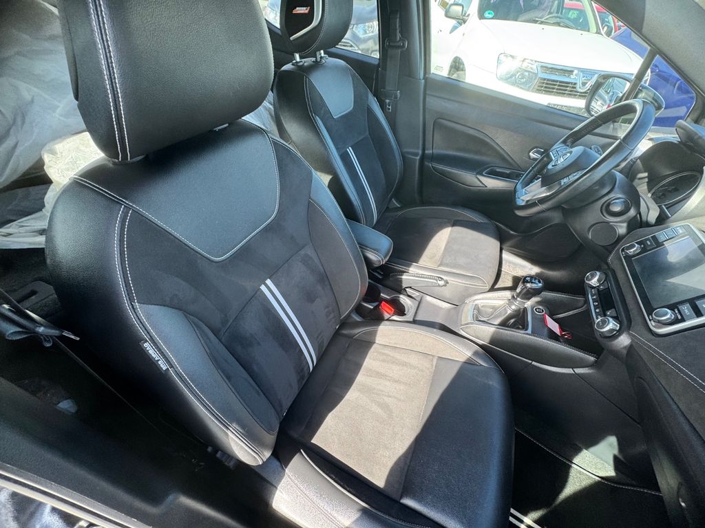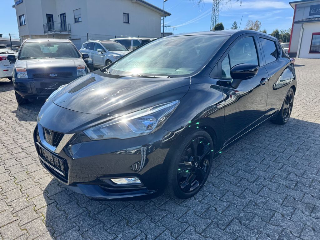 3. Bremsleuchte, 4 Lautsprecher, Abdeckkappen Außenspiegel Carbon-Optik, Airbag Beifahrerseite abschaltbar, Airbag Fahrer-/Beifahrerseite und Seitenairbag vorn, Audio-Paket, Audiobedienung am Lenkrad, Automatische Fahrlichtschaltung, AUX-IN-Anschluss (AUX-IN), Außenspiegel elektr. anklappbar, Außenspiegel elektr. verstellbar, Außenspiegel Wagenfarbe, Außentemperaturanzeige, Blinkleuchten LED in Außenspiegel integriert, Bluetooth-Schnittstelle, Bordcomputer, Bremsassistent (Nissan Brake-Assist), Dachantenne, Dachspoiler, Drehzahlmesser, Fahrassistenz-System: Berganfahr-Assistent, Fahrassistenz-System: Notbrems-Assistent, Frontscheibe Verbundglas, Fußmatten Velours, Gepäckraumabdeckung / Rollo, Geschwindigkeits-Begrenzeranlage, Getränkehalter hinten, Getränkehalter vorn, Gurtstraffer, Heckscheibe heizbar, Heckscheibenwischer, Hochtöner, Isofix-Aufnahmen für Kindersitz, Karosserie: 5-türig, Kopf-Airbag-System, Kopfstützen vorn und hinten verstellbar, Lenkrad (Sport/Leder), Lenksäule (Lenkrad) höhen-/längsverstellbar, Leseleuchte vorn, LM-Felgen, Motor 1,0 Ltr. - 86 kW 12V KAT, Nebelschlussleuchte, Radioempfang digital (DAB), Reifen-Reparaturset, Reifendruck-Kontrollsystem, Rückfahrkamera, Rücksitzbank umklappbar, Schadstoffarm nach Abgasnorm Euro 6d-TEMP, Schalt-/Wählhebelgriff Leder, Scheibenwischer mit Intervallschaltung, Seitenschutzleisten, Sitz vorn links höhenverstellbar, Sitzbezug / Polsterung: Stoff, Sitzbezug / Polsterung: Velours / Kunstleder, Sonnenblenden mit Spiegel, Start/Stop-Anlage, Steckdose (12V-Anschluß), Stylingelement Stoßfänger hinten unten, Stylingelement Stoßfänger vorn unten, TFT-Farbdisplay (5,0 Zoll), Touchscreen-Farbdisplay (7,0 Zoll) in Mittelkonsole, Türgriffe innen verchromt, Türverkleidung Kunstleder, Uni-Lackierung, USB-Schnittstelle, Verglasung hinten abgedunkelt