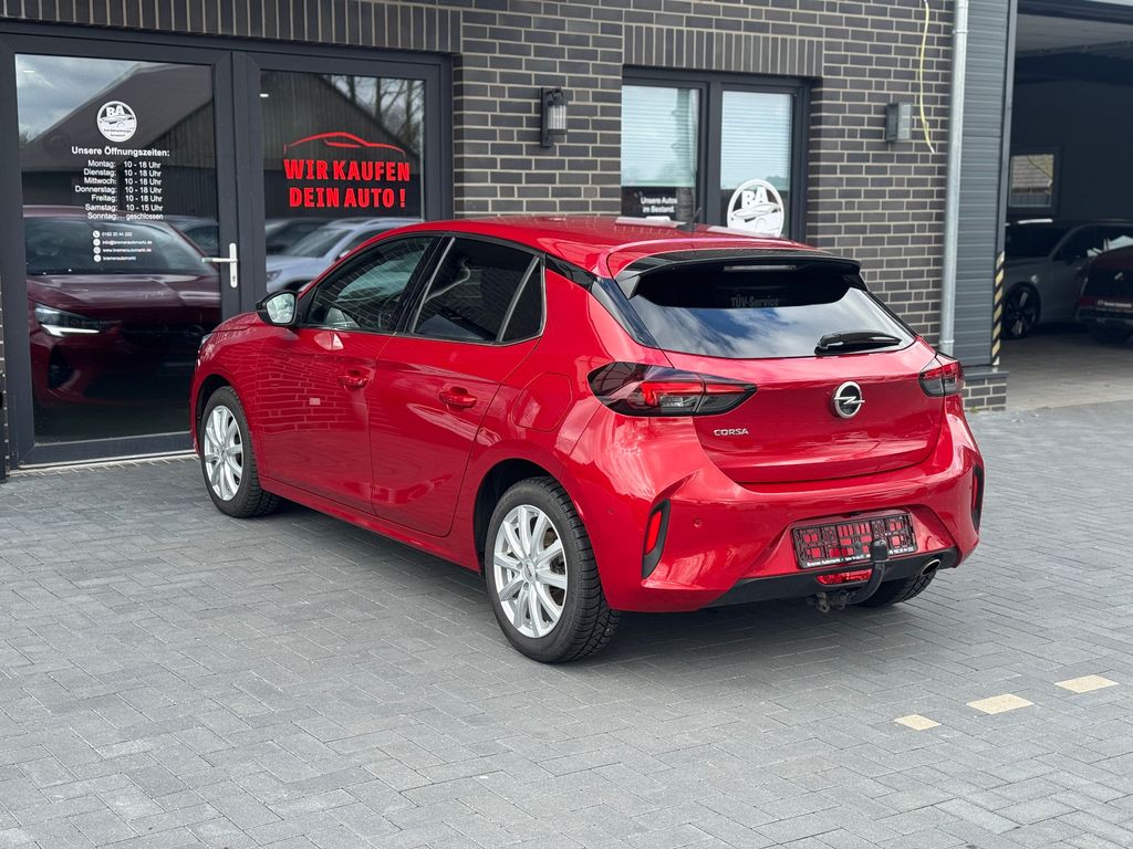 Dieser gepflegte Opel Corsa aus dem Jahr 2021 überzeugt durch seine umfangreiche Ausstattung und seinen ausgezeichneten Zustand. Mit nur einem Vorbesitzer und lückenloser Servicehistorie bietet dieser Kompaktwagen ein hervorragendes Preis-Leistungs-Verhältnis. Der sparsame 1,5-Liter-Dieselmotor mit 102 PS sorgt für angenehme Fahrleistungen bei niedrigem Verbrauch und erfüllt die Euro-6-Norm. Die rote Metallic-Lackierung in Kombination mit Leichtmetallfelgen verleiht dem Fahrzeug einen sportlichen Charakter.Im Innenraum erwarten Sie Teilledersitze in Schwarz, Sportsitze, beheizbare Vordersitze und ein beheizbares Lenkrad. Die 3-Zonen-Klimaautomatik sorgt für angenehmes Klima. Das Infotainmentsystem bietet Navigation, Touchscreen, Apple CarPlay, Android Auto, Bluetooth und DAB-Radio. Zahlreiche Assistenzsysteme wie Spurhalteassistent, Müdigkeitserkennung und Fernlichtassistent erhöhen die Sicherheit.